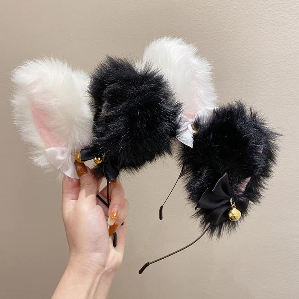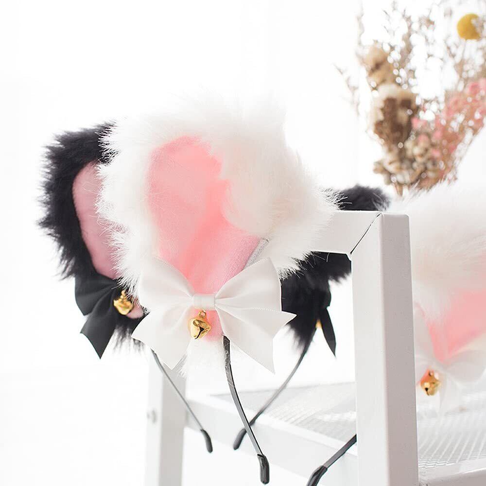 【在庫処分】[YFFSFDC] 猫耳 カチューシャ 2色セット 鈴付き リボン付き かわいい ねこ耳 ねこみみ 黒猫 白猫 ふわふわ コスプレ 仮装 小物 ヘアアクセサリー ヘッドバンド イベント 学園祭 ハロウィン