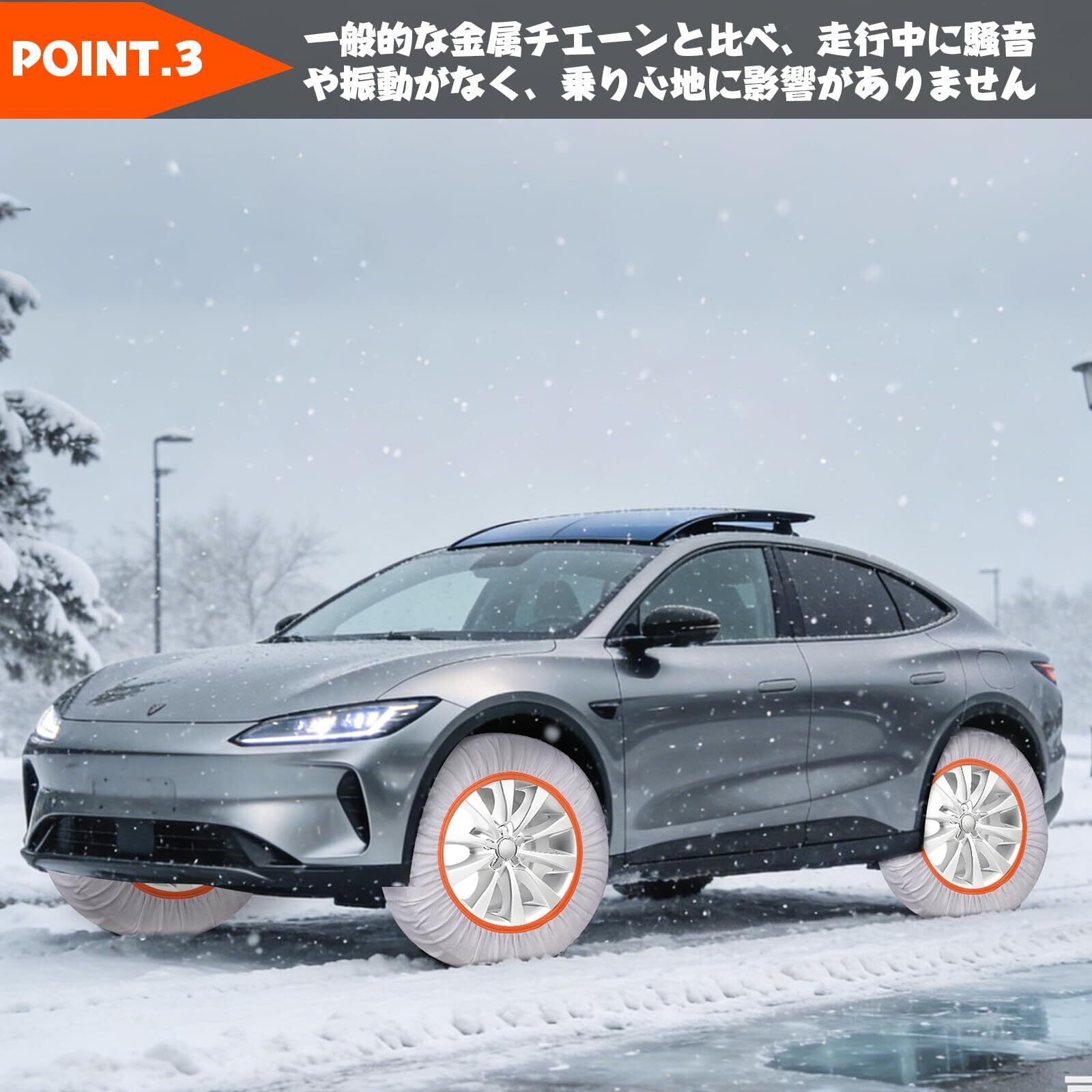 【静音・低振動でタイヤやホイールを傷つけない】 金属チェーン特有の騒音や振動を大幅に軽減。 静かで快適な乗り心地を実現します。 布製のため、アルミホイールやタイヤを傷つけにくく、車両への負担も少ない設計です。