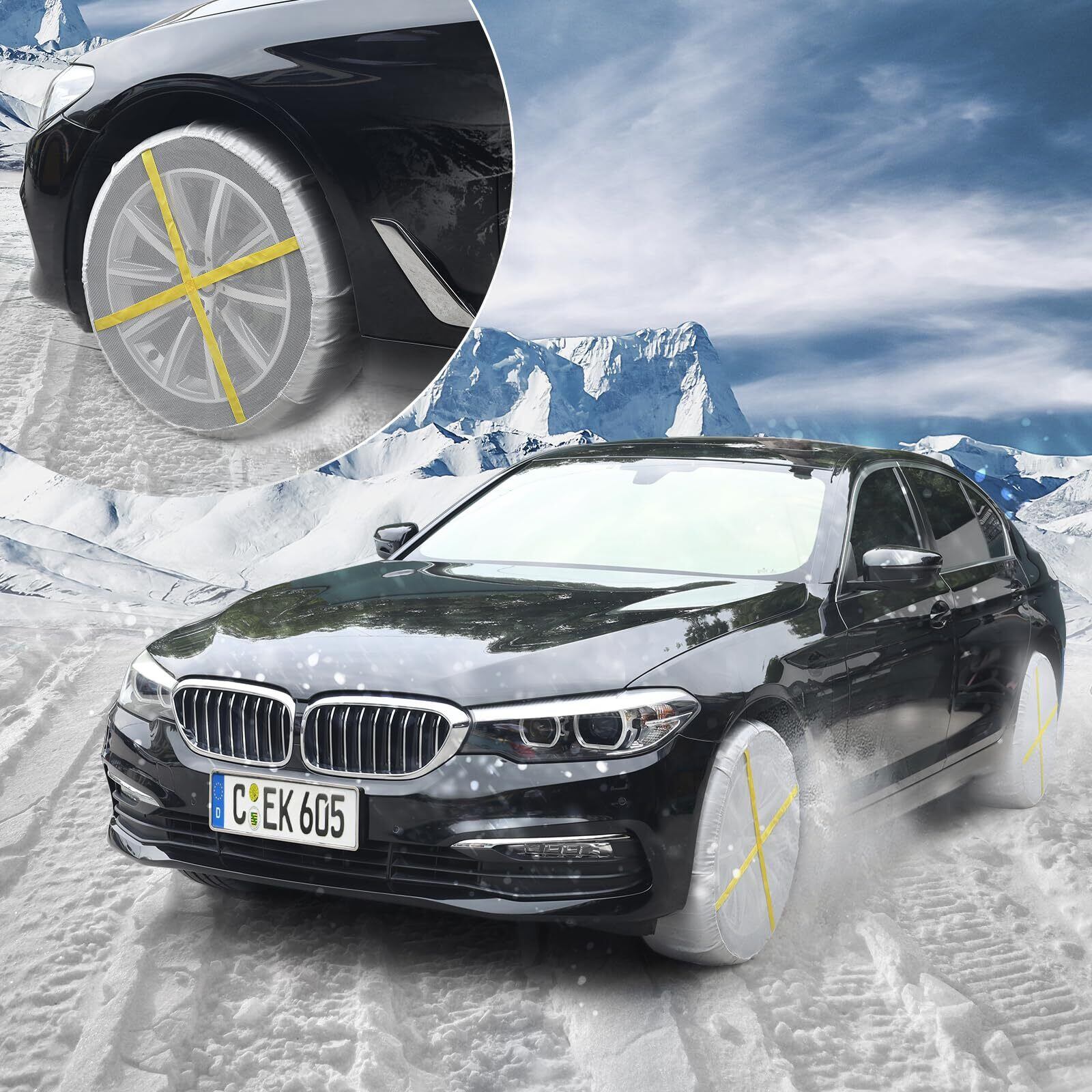 【滑り止め効果】スノーソックスは特殊な繊維でできており、接合部はすべてダブルステッチで縫製し、強度抜群です。タイヤと地面との摩擦を高めて優れた横滑り防止効果を発揮します。チェーン規制に適合した布製タイヤカバーは、雪道での安全運転をサポートする頼もしい存在だ。
