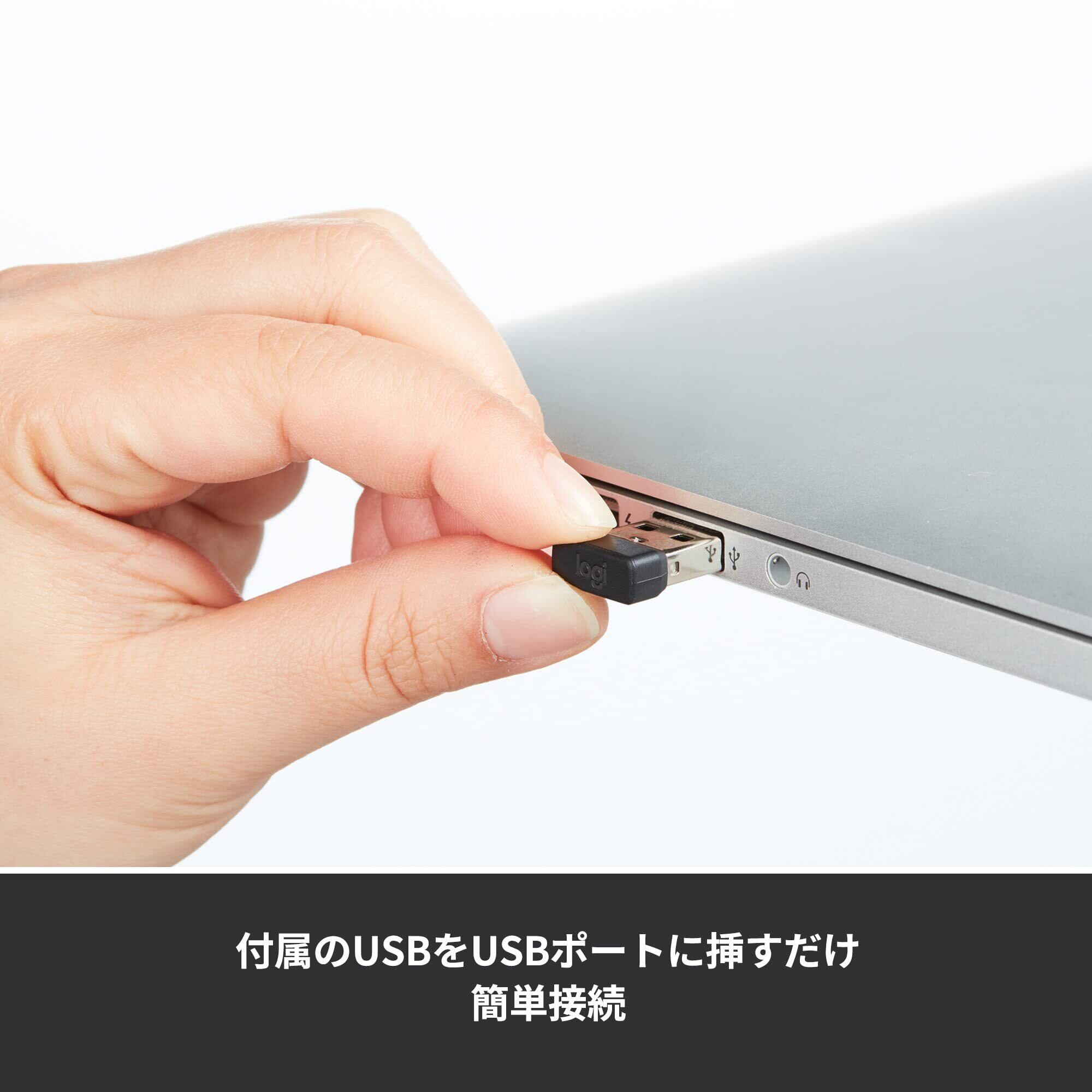 【プラグ&プレイ接続】付属のUSBをパソコンに差し込むだけの簡単接続/Unifying非対応 ※製品お届け時、USBはマウス裏面に格納されています