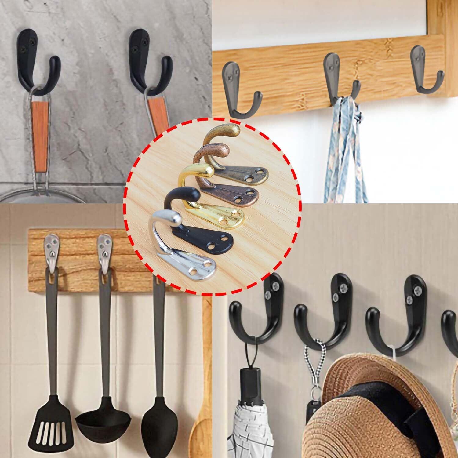 【レトロなデザインです】 :これらのフックは「U」字型のヴィンテージデザインを採用しており、洋服などを掛けるのにとても便利です。1つのフックにつき2つの自己攻めネジで固定するため、非常に丈夫で最大3kgまでの耐荷重があります。さまざまな日常用品や小物類を掛けるのに最適です。