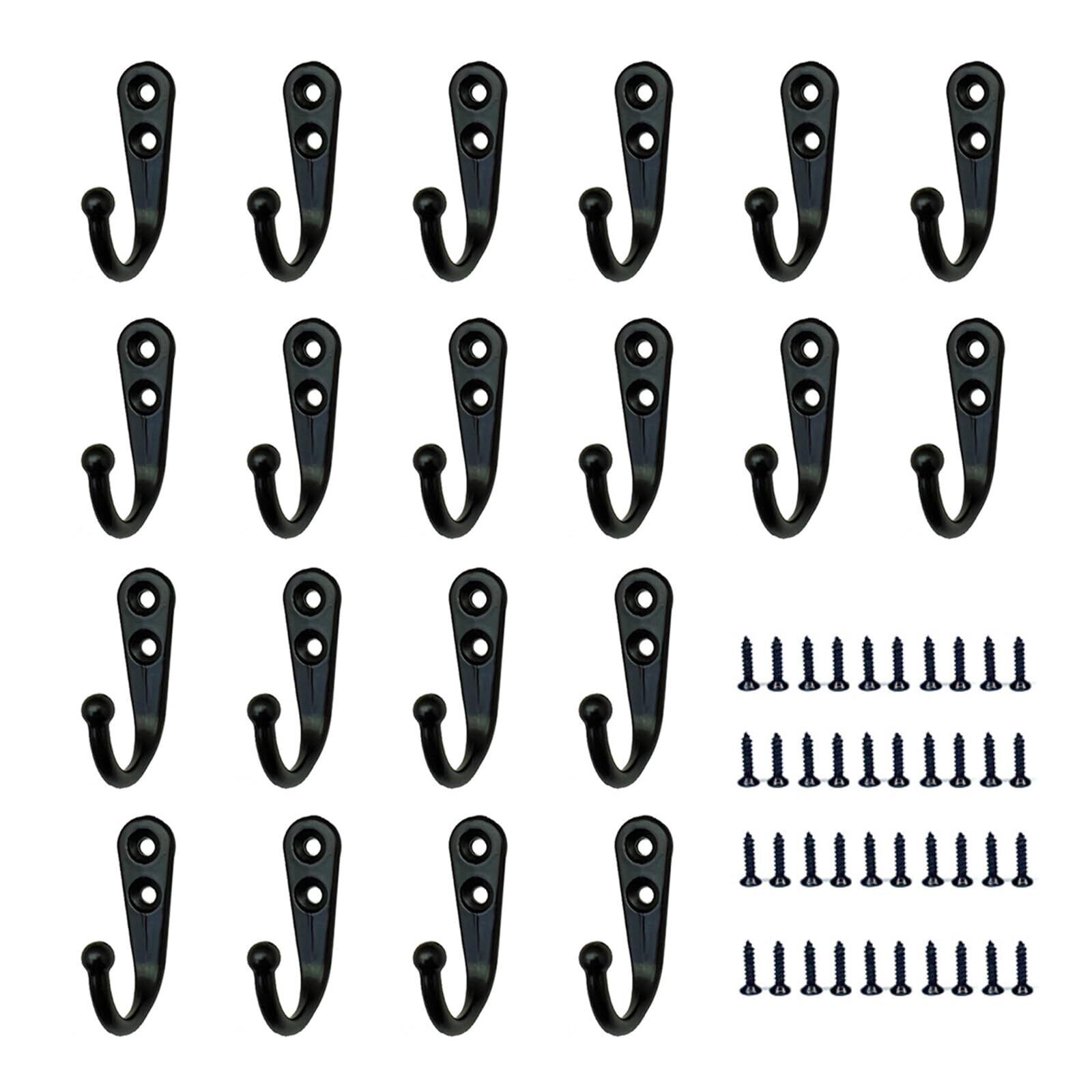 happykau 壁掛けフック 20個セット 金具 壁付け フック 高耐荷重 アンティーク 調 コート掛け ハンガーフック 壁 ネジ付き 壁かけ 吊り下げ収納 帽子 洋服掛け 玄関 浴室 寝間 台所 キッチン (ブラック)