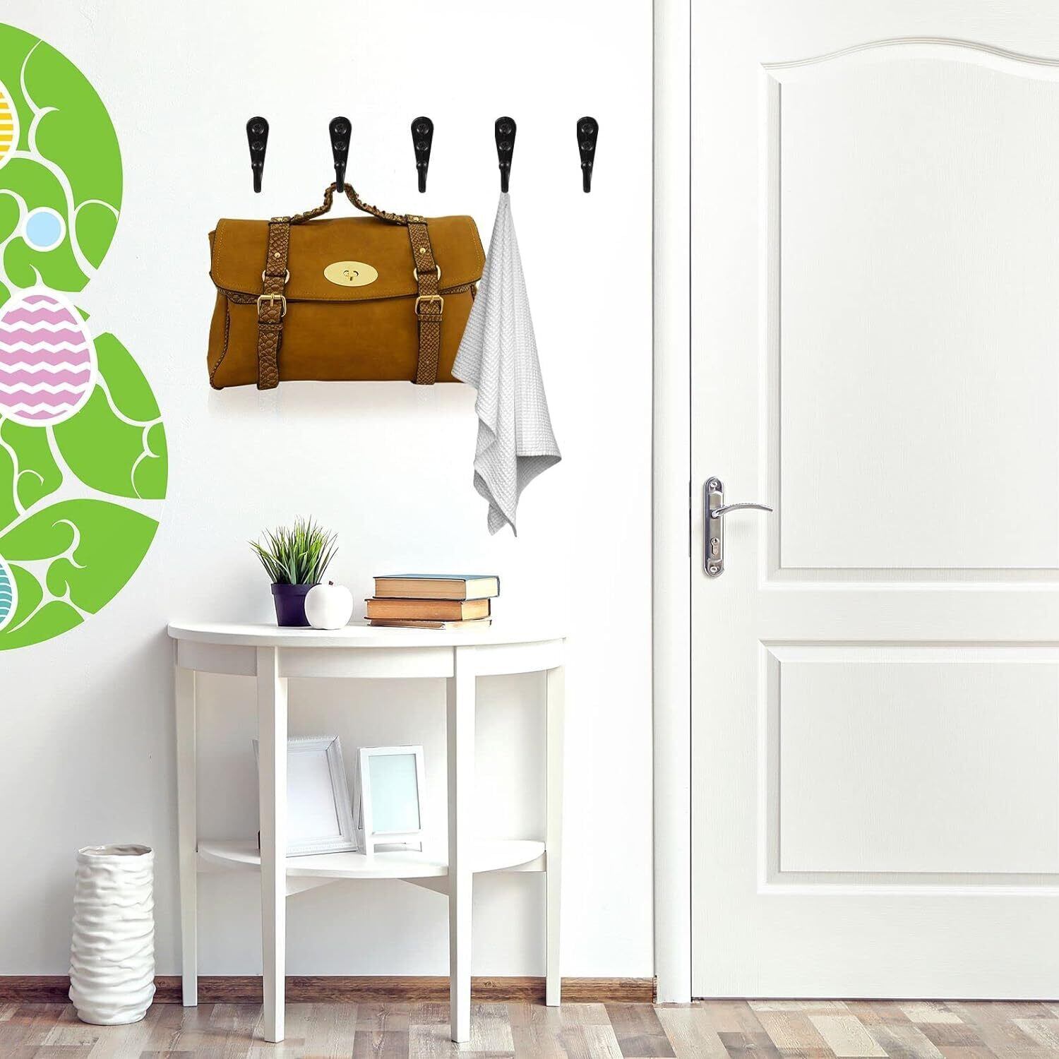 壁掛けフック 10個セット 壁掛け ウォールフック 鍵ホック 高耐荷重 おしゃれ 吊り下げ収納 鍵 帽子 洋服 コート掛け 玄関 浴室 台所 キッチン 寝間 ネジ付き ブラック