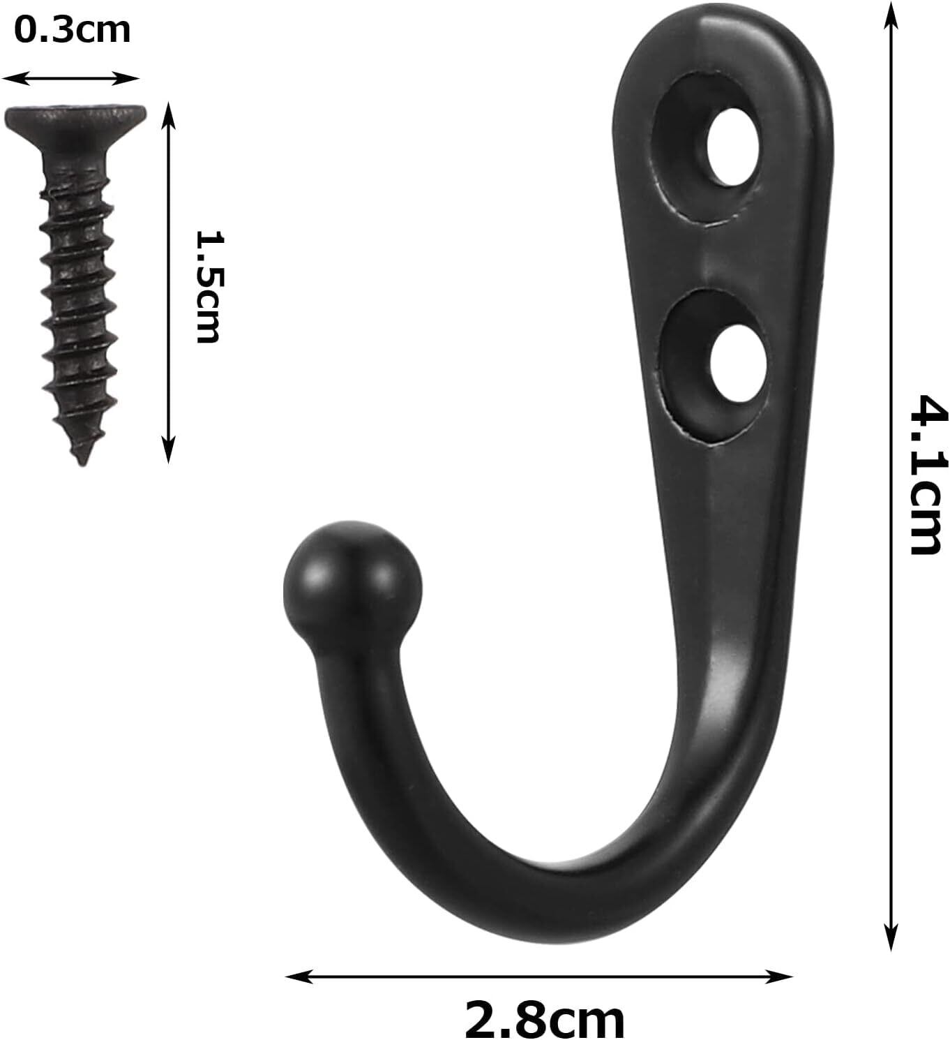 【商品仕様】素材:亜鉛合金。色:ブラック。個数:フック*10個,ネジ*20個。