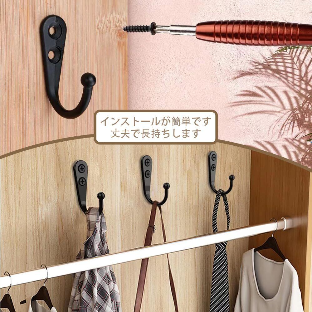 壁掛けフック ウォールフック ウォールフック ネジフック付き 鍵ホック おしゃれ 高耐荷重 吊り下げ収納 アンティーク調 金具落下防止 浴室 玄関 寝間 台所 洗面所 洋室 10個セット (ブラック)
