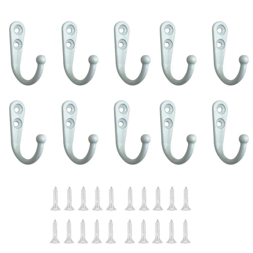 壁掛けフック 10個セット アンティークフック ウォールフック 高耐荷重 壁掛け収納 玄関 浴室 寝間 台所 キッチン ネジ付き (ホワイト)