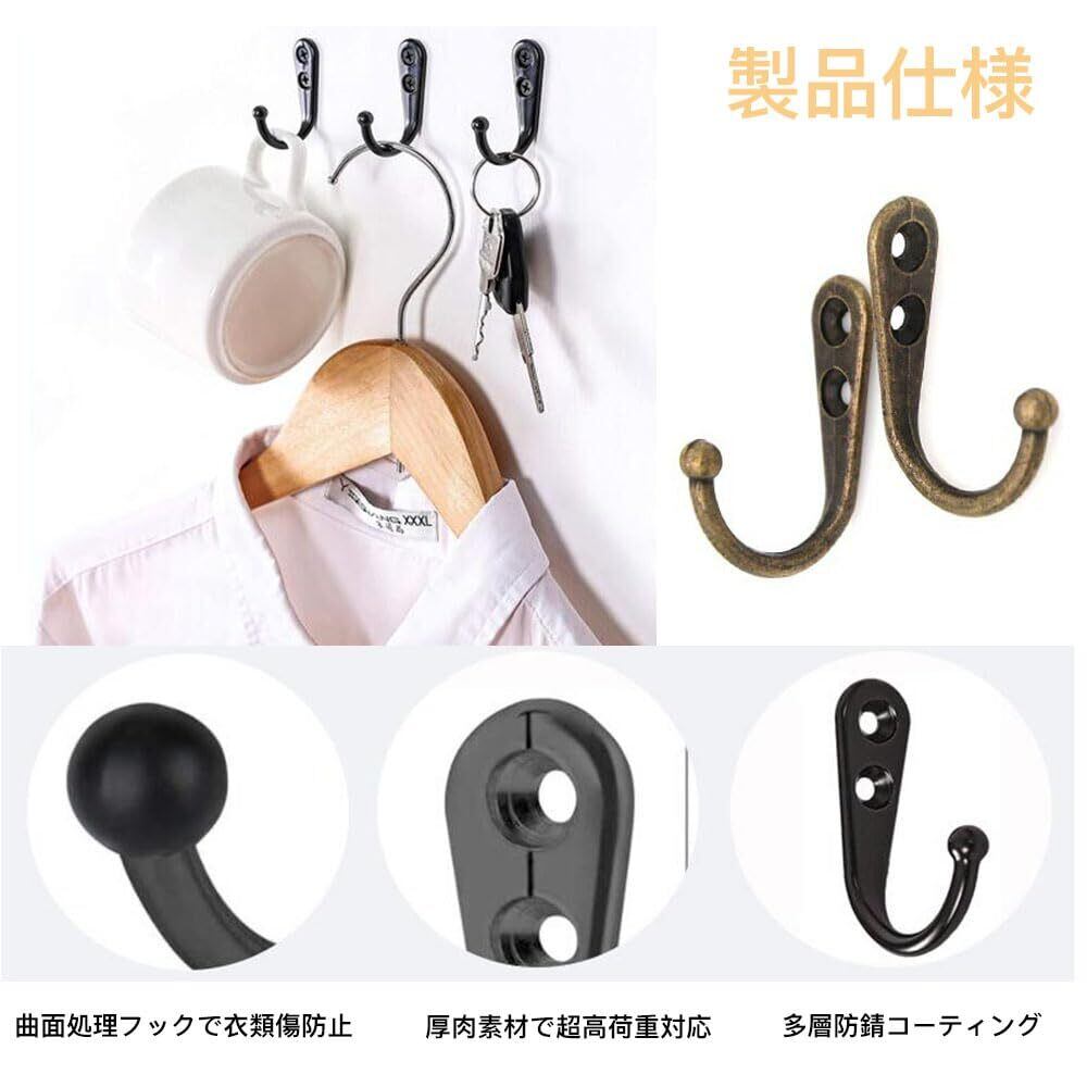 【充実のセット内容】フック10個とネジ20個が同梱されており、複数の場所にまとめて設置可能。衣類、バッグ、小物など、さまざまなものを整理整頓できます。色:ブラック。ブロンズ。