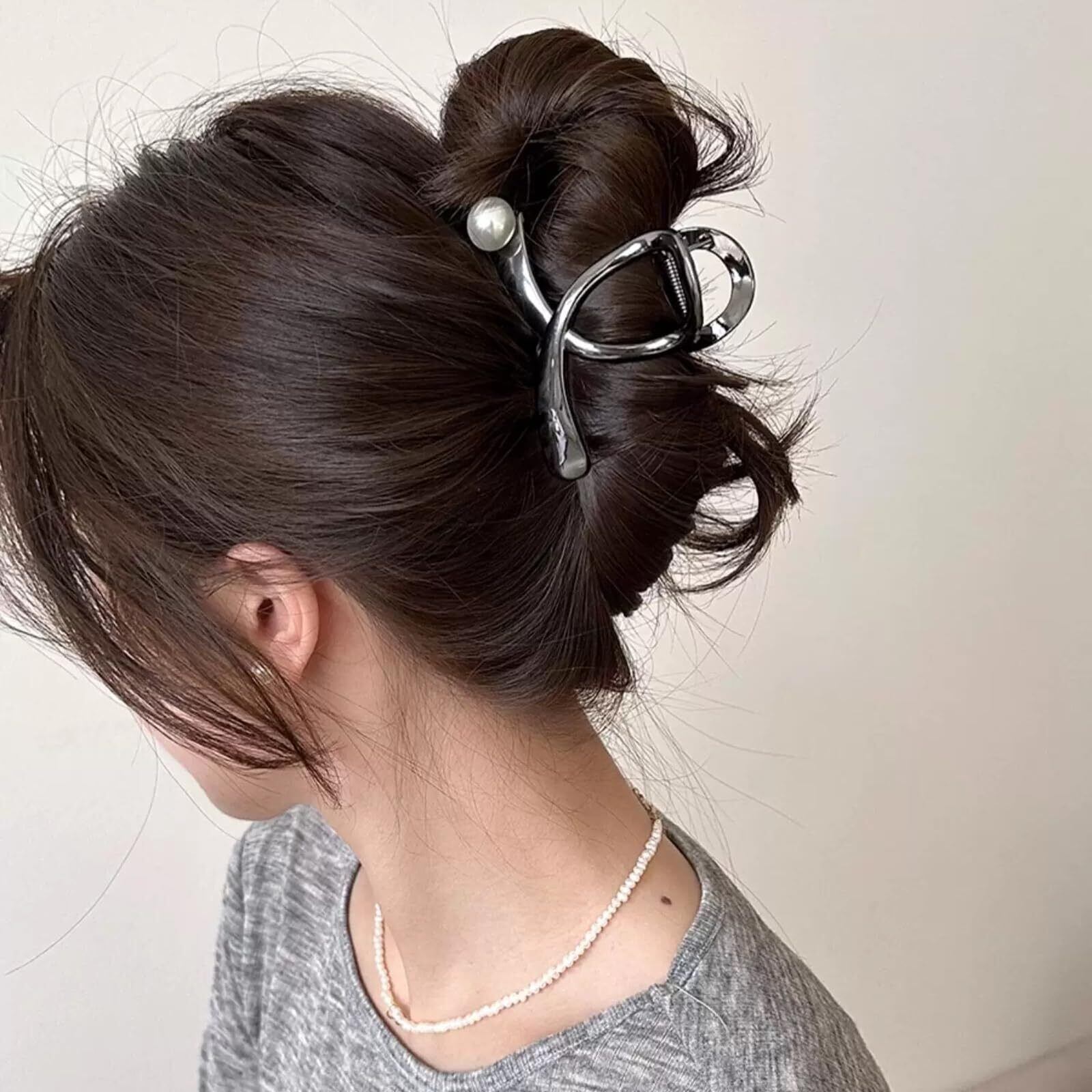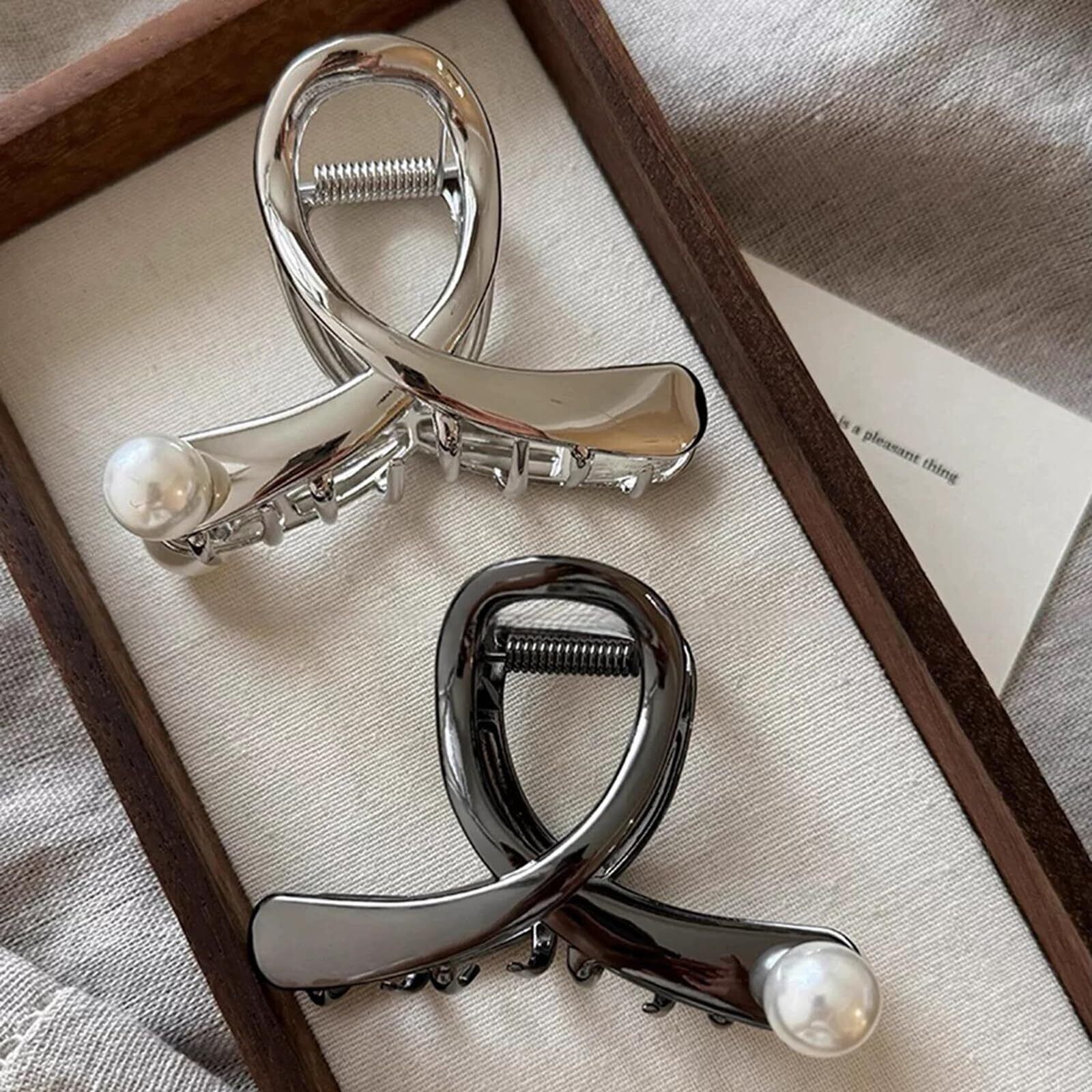 【新着商品】ヘアクリップ 8cm しっかりとまる 金属クリップ バンスクリップ ヘアアクセサリー シンプル レディース バナナクリップ 大人向け 韓風 可愛い 髪留め 髪飾り 軽量 金属パールブラックグレー