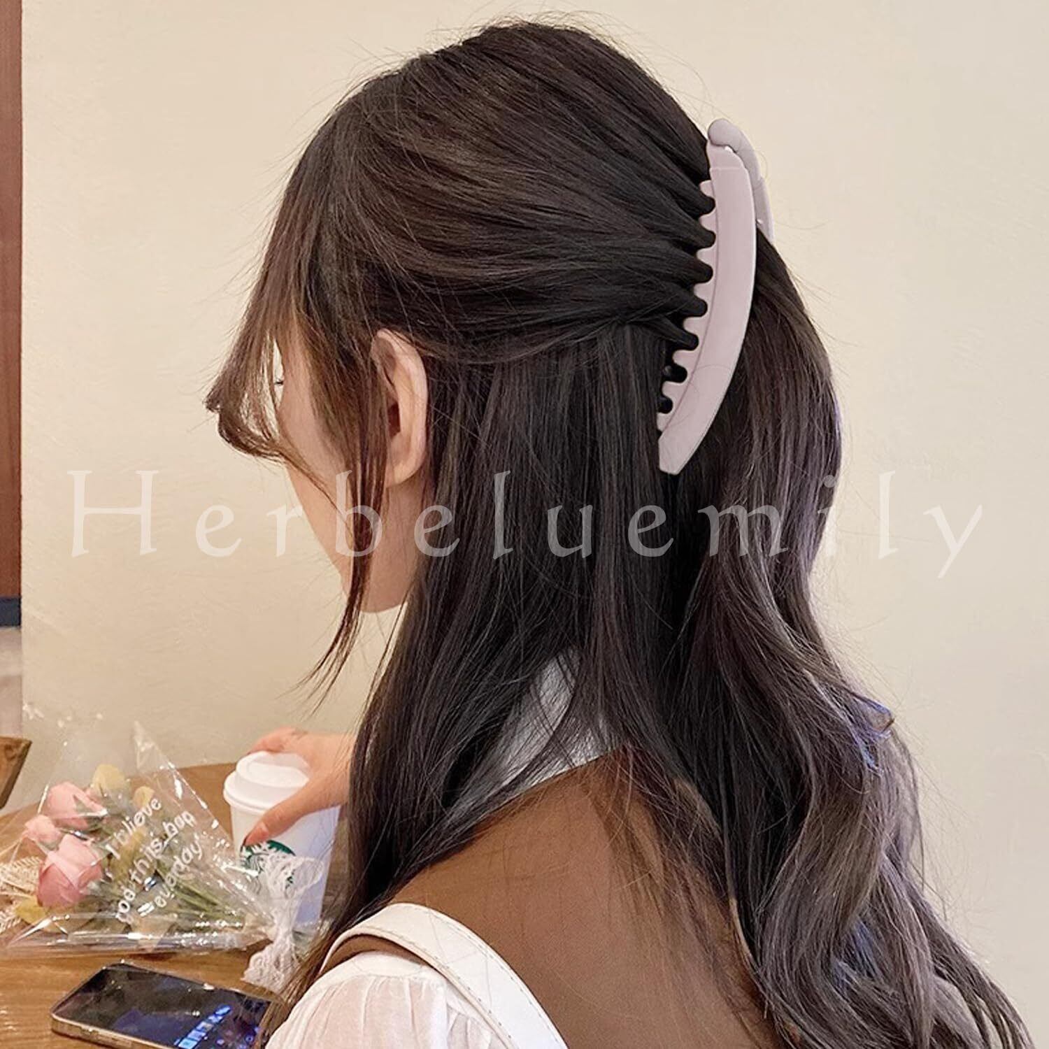 ✴️シンプルながらも個性的なデザインが可愛いバナナクリップ。挟んで留める、ダブルクリップ式なのでヘアゴムよりも摩擦を起こさず、しっかり髪をまとめ上げます。