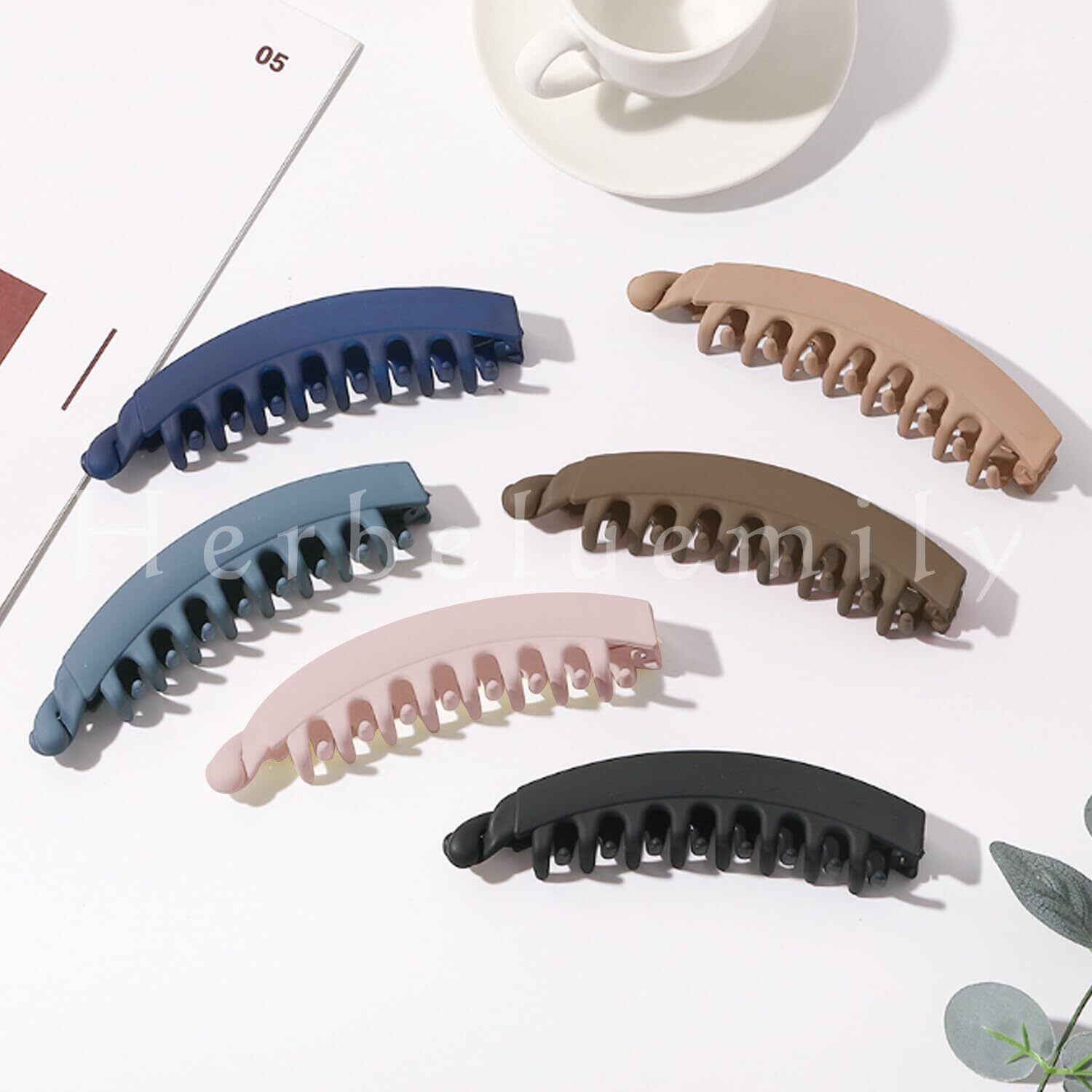 【新春セール】[Herbeluemily] バナナクリップ ヘアクリップ シンプル 上品 カジュアル 多毛 大きいサイズ 13cm グレーベージュ HM-0090-R02-GYBE