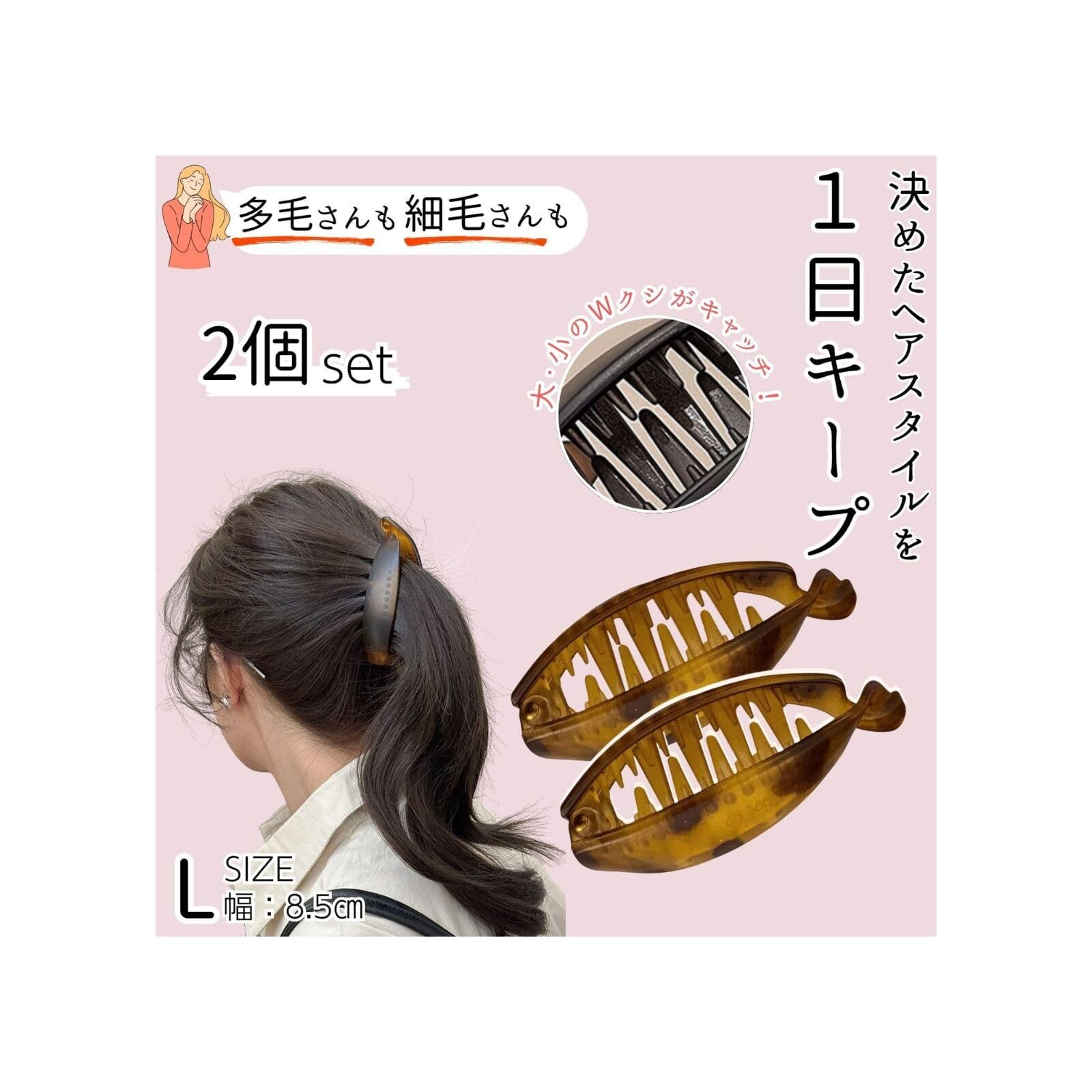 TheFirstGrain バナナクリップ 大きめ 毛量多い しっかりとまる 多毛 上品 ヘアクリップ シンプル べっこう柄 2個入り(イエローブラウン、L)