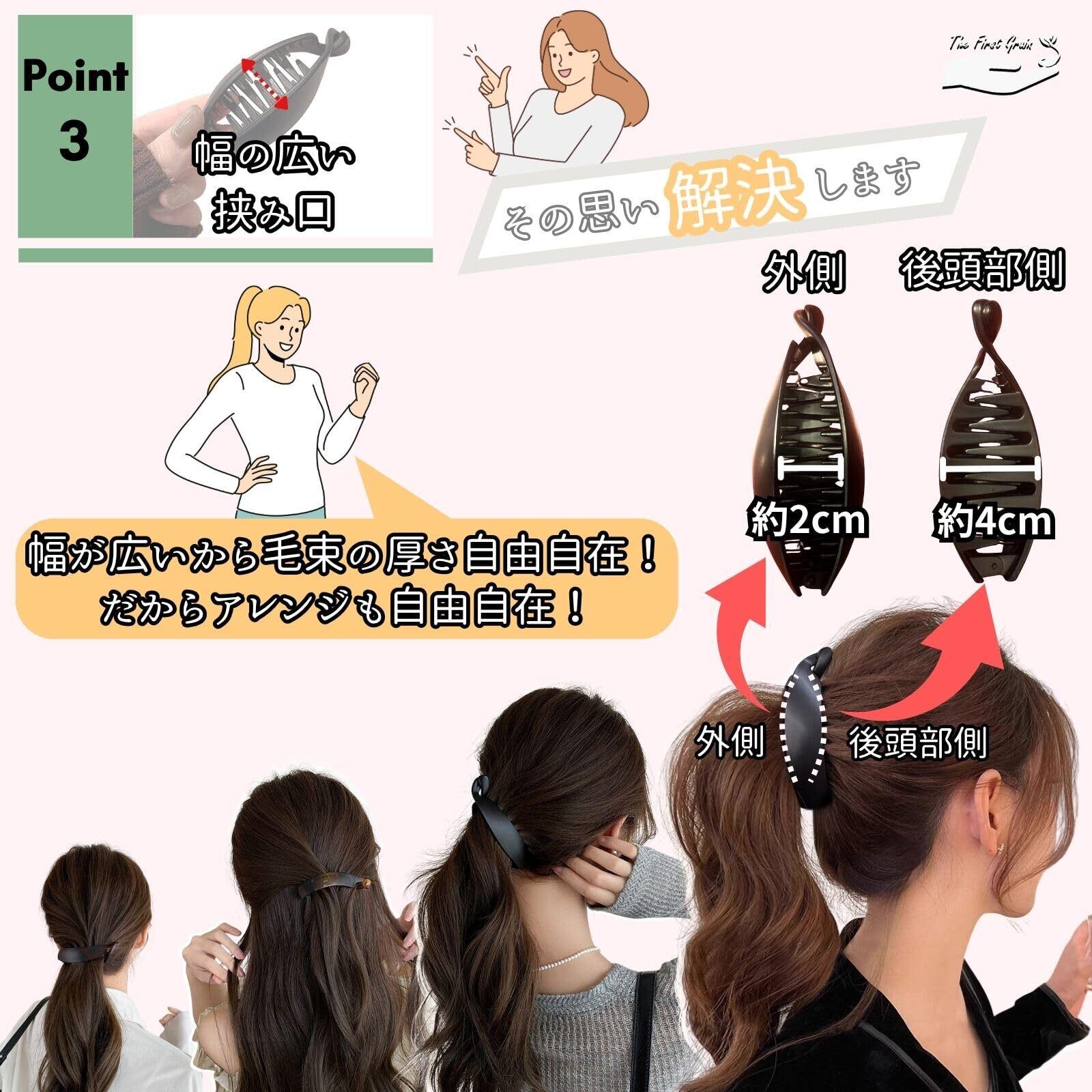 【在庫処分】TheFirstGrain バナナクリップ 大きめ 毛量多い しっかりとまる 多毛 上品 ヘアクリップ シンプル べっこう柄 2個入り(イエローブラウン、L)