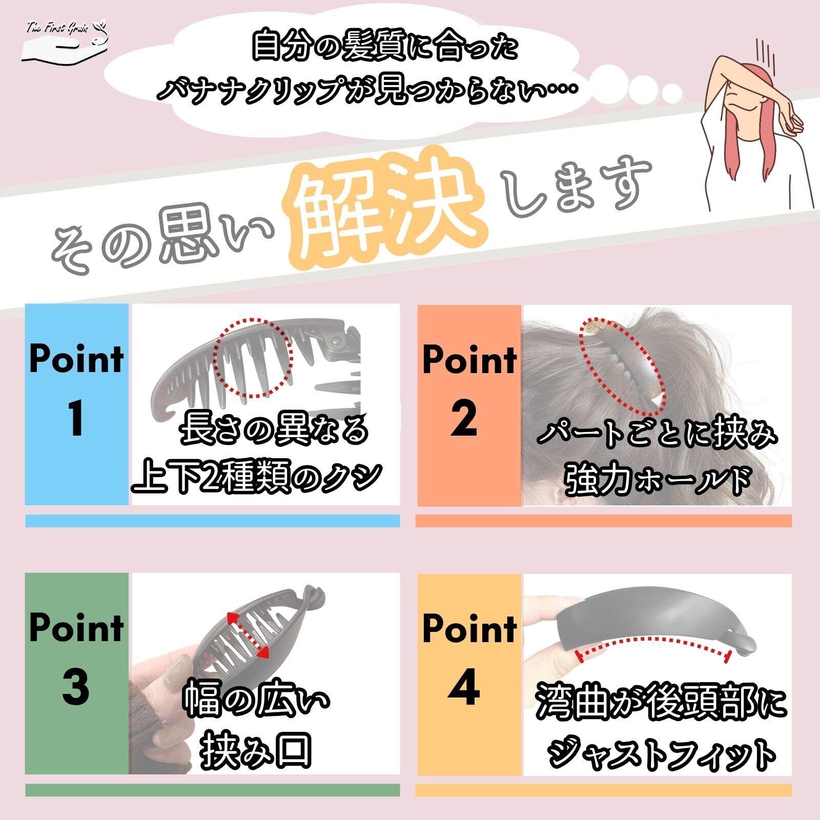 TheFirstGrain バナナクリップ 大きめ 毛量多い しっかりとまる 多毛 上品 ヘアクリップ シンプル べっこう柄 2個入り (レッドブラウン, L)