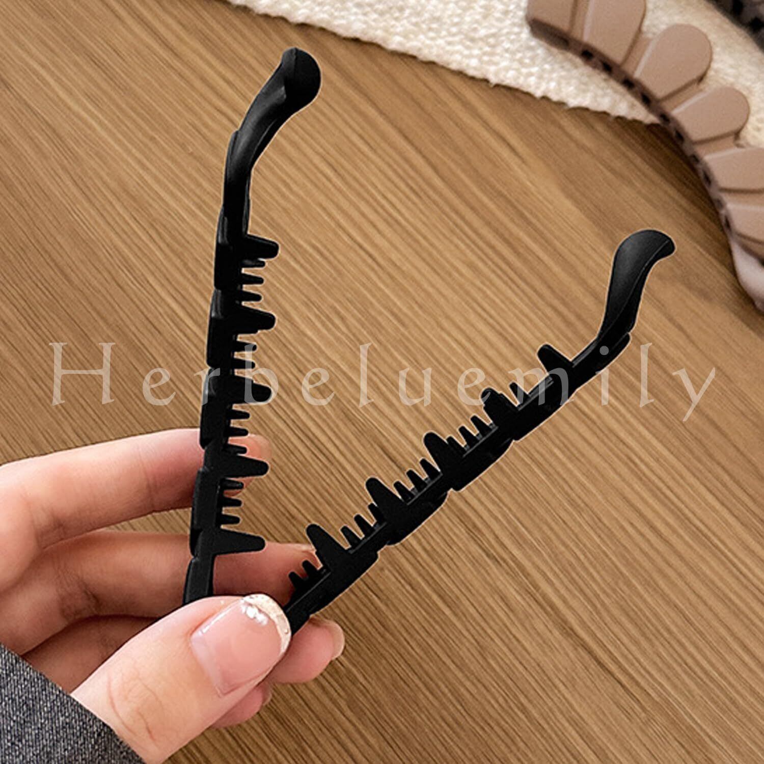 [Herbeluemily] バナナクリップ ヘアクリップ しっかり 髪留め シンプル おしゃれ 花びら 2個セット A ブラック+ブラウン HM-0105-R02-A