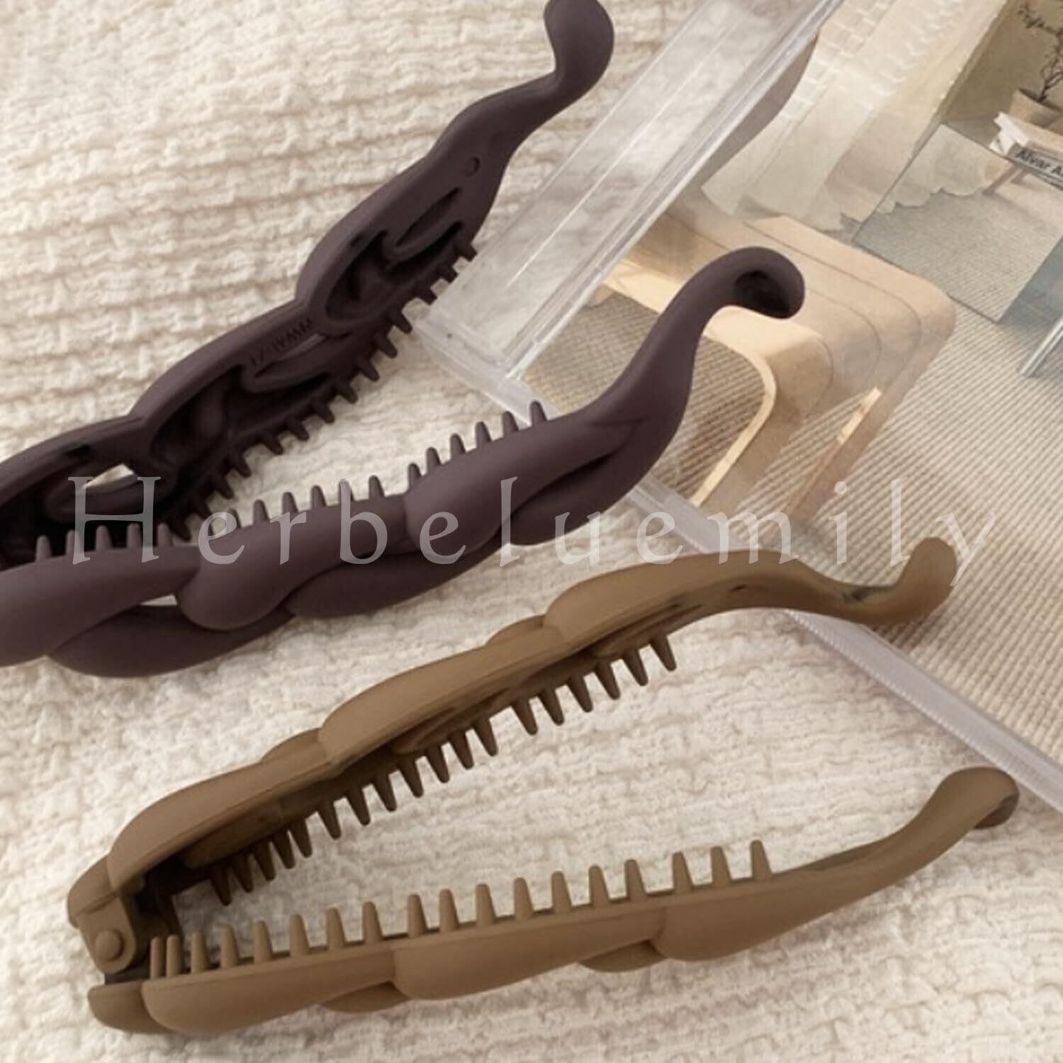 【数量限定】[Herbeluemily] バナナクリップ ヘアクリップ シンプル 髪留め バナナクリップ ヘアクリップ 三つ編み ブラック HM-0091-R02-BK