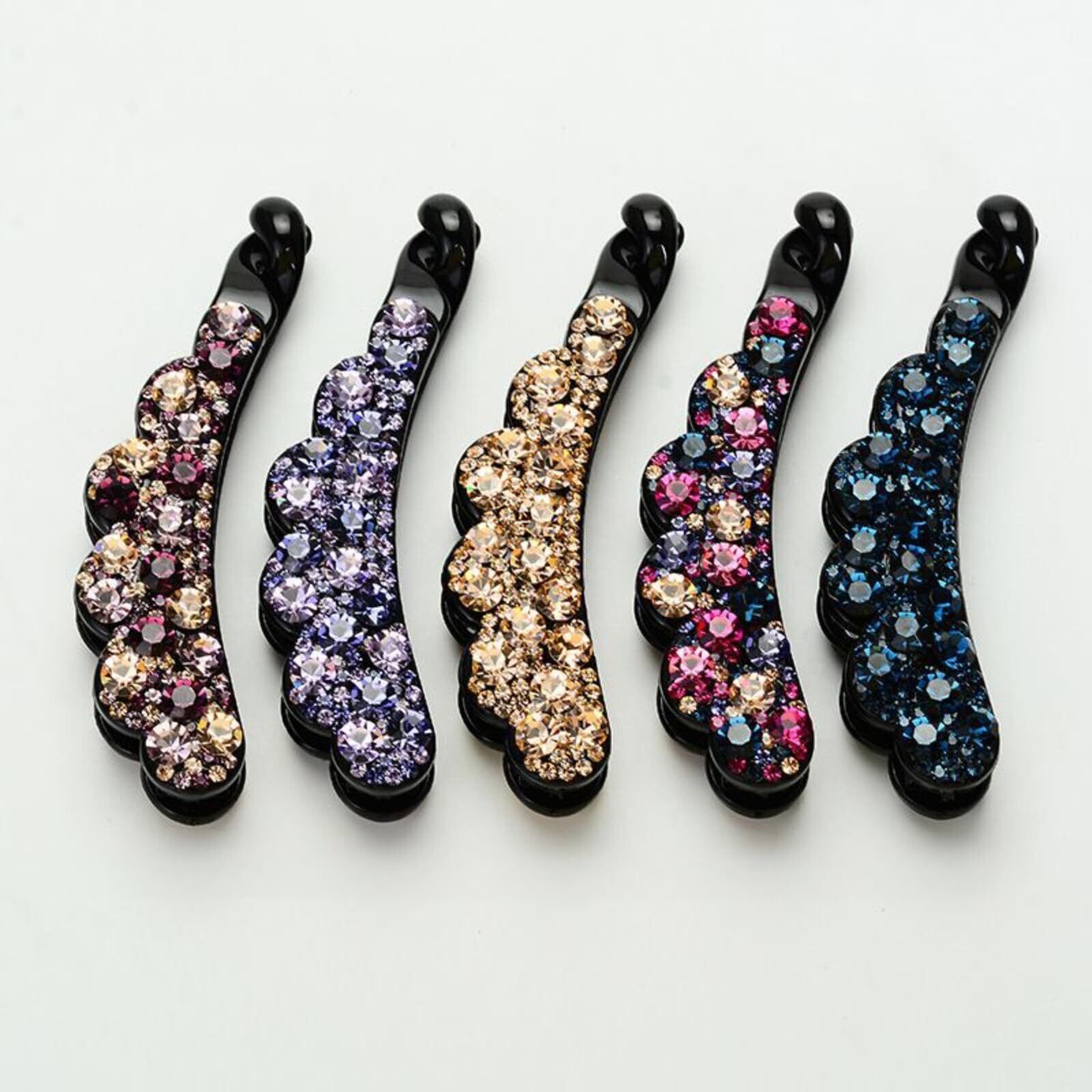 キラキラとシックな輝きを放つジュエルドロップが程よく上品で大人可愛いバナナクリップ。ヘアアレンジにお困りの方でも素早く楽にまとめ髪が完成!プレゼント,母の日等、ギフトとしてもご利用頂けます。