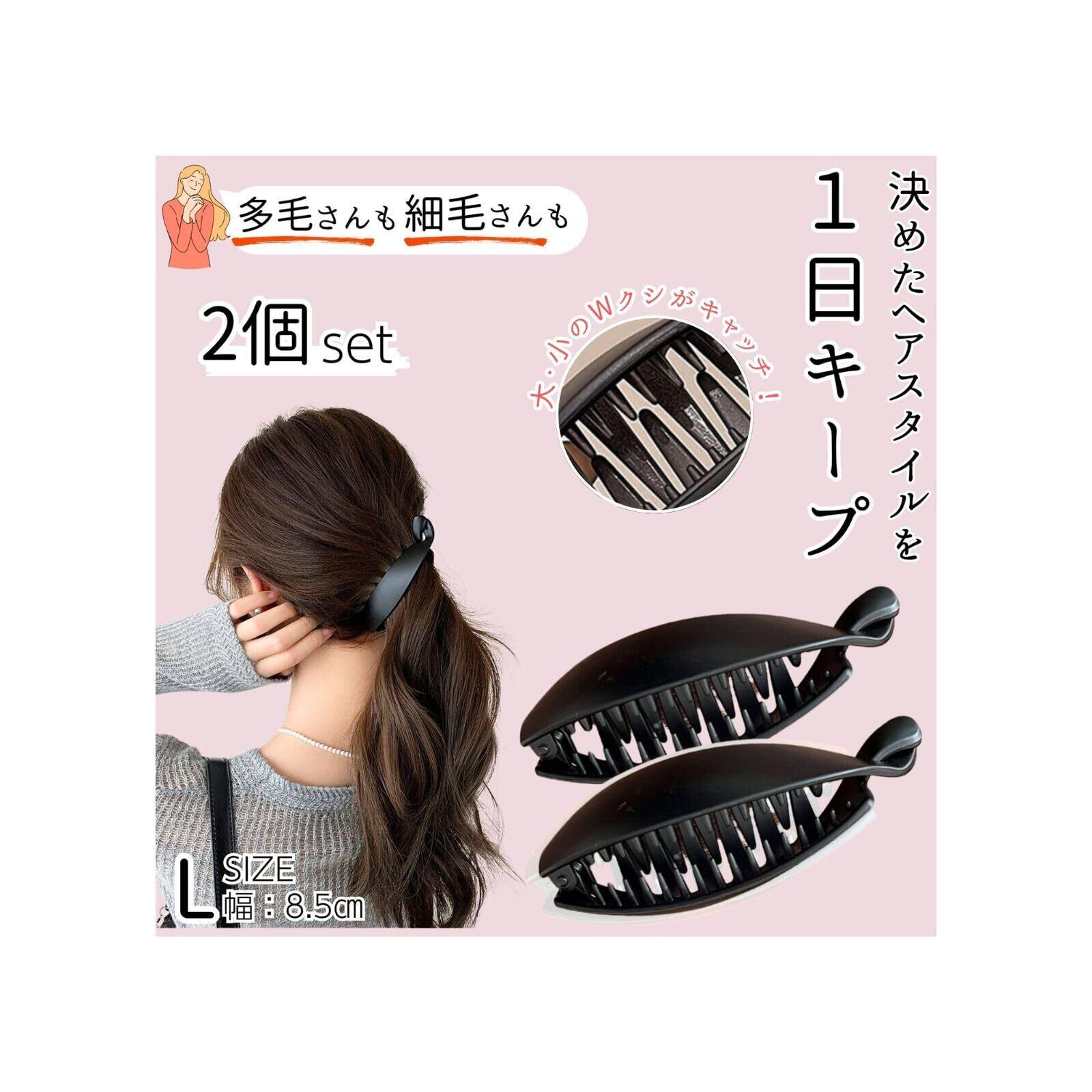 TheFirstGrain バナナクリップ 大きめ 毛量多い しっかりとまる 多毛 上品 ヘアクリップ シンプル 2個入り (艶消しブラック, L)
