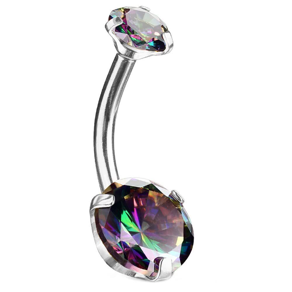 [HSP] ヘソピアス 14G カラー ラウンドジュエル バナナバーベル ボディピアス サージカル ステンレス シルバー ジュエル クリスタルVM