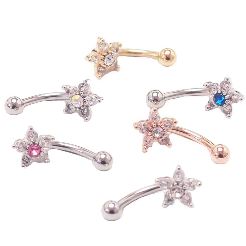 【在庫セール】[HSP] 16G CZ 6フラワージュエル アイブロウ バナナバーベル