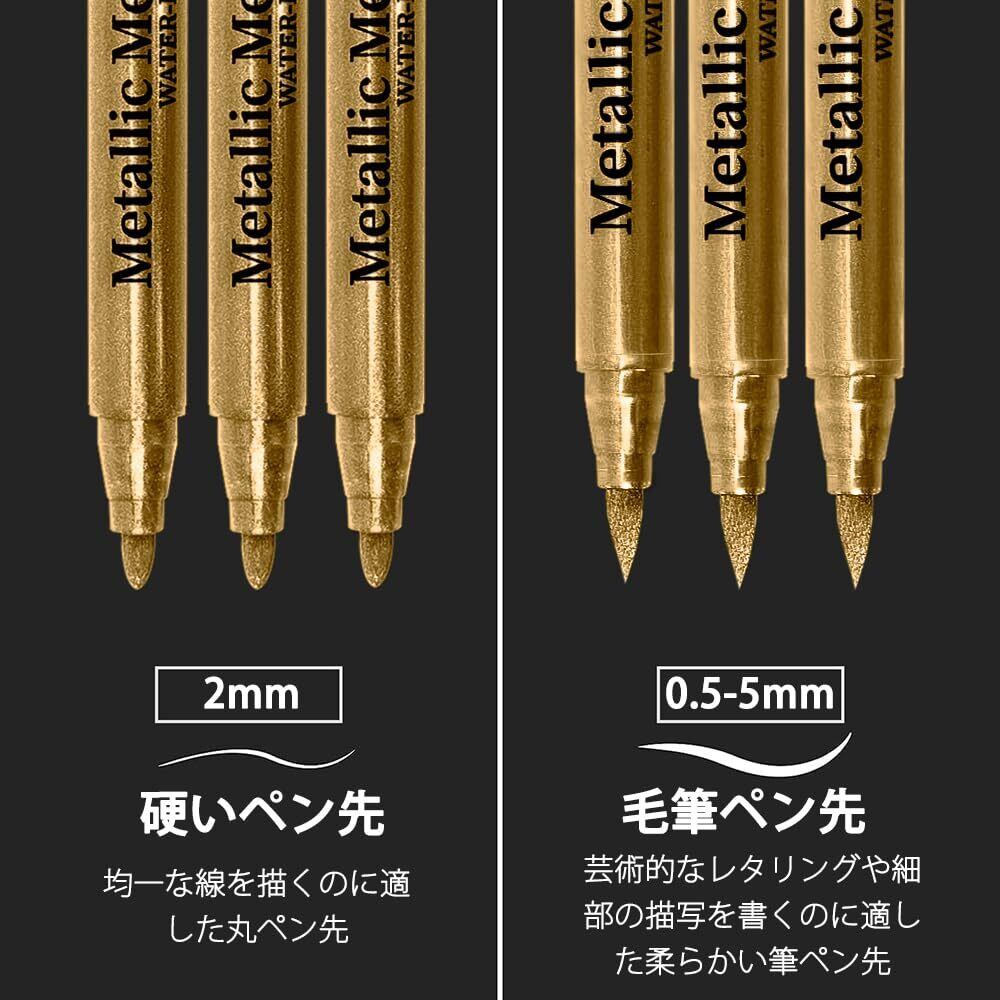 金色 ペン ゴールドマーカーペン 2種類のペン先 耐水インク/速乾/0.5~5mm線幅 アクリル白筆ペン 名前ペン タイヤホワイトレターペン タイヤマーカー 白マジックペン 漫画ペン 石 木材 セラミック ガラス 金属 布 タイヤ用