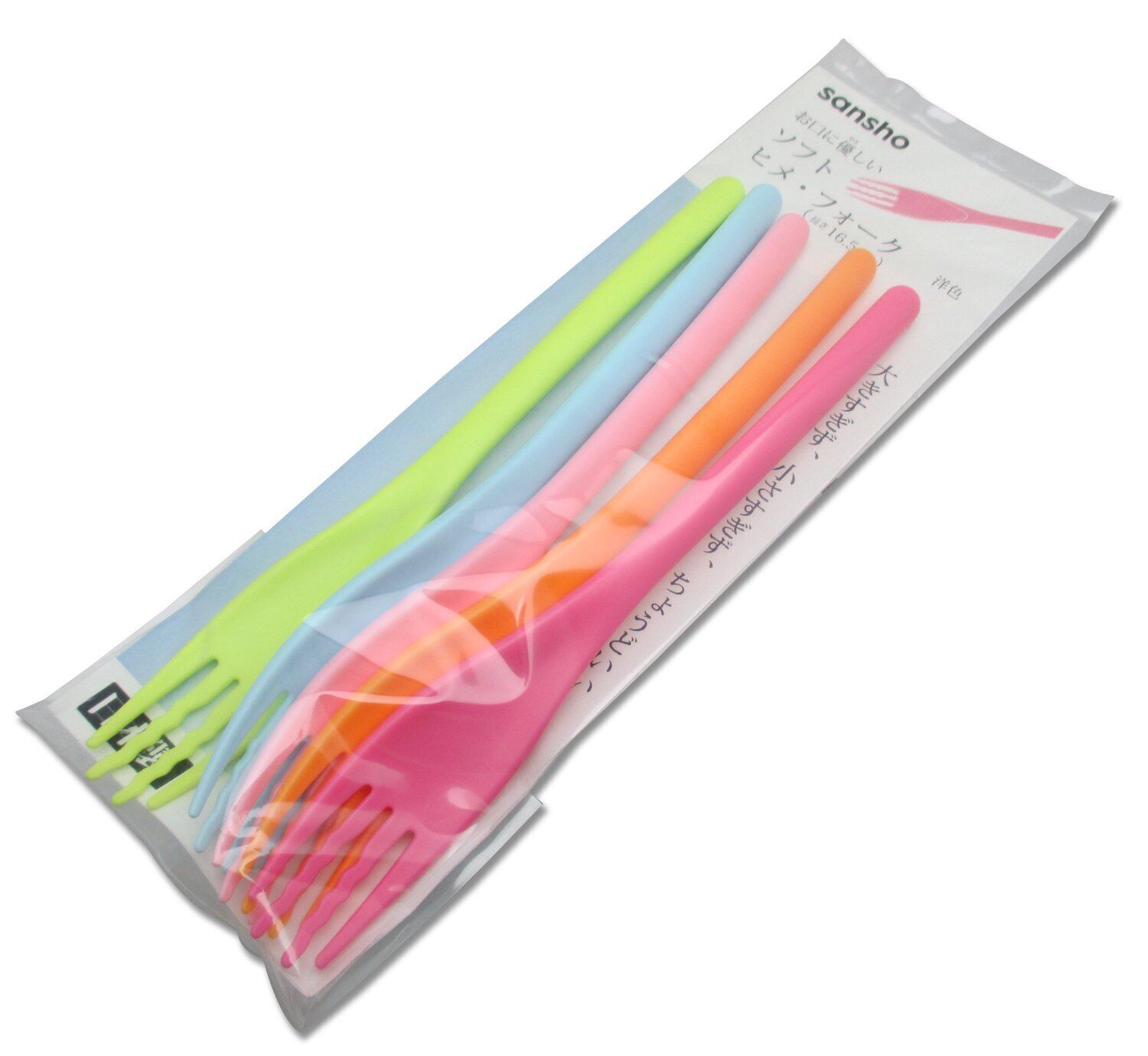 遠藤産商 お口に優しい ソフトヒメ・フォーク 洋色 5本組 ローズ/オレンジ/ピンク/ブルー/グリーン 全長:16.5cm