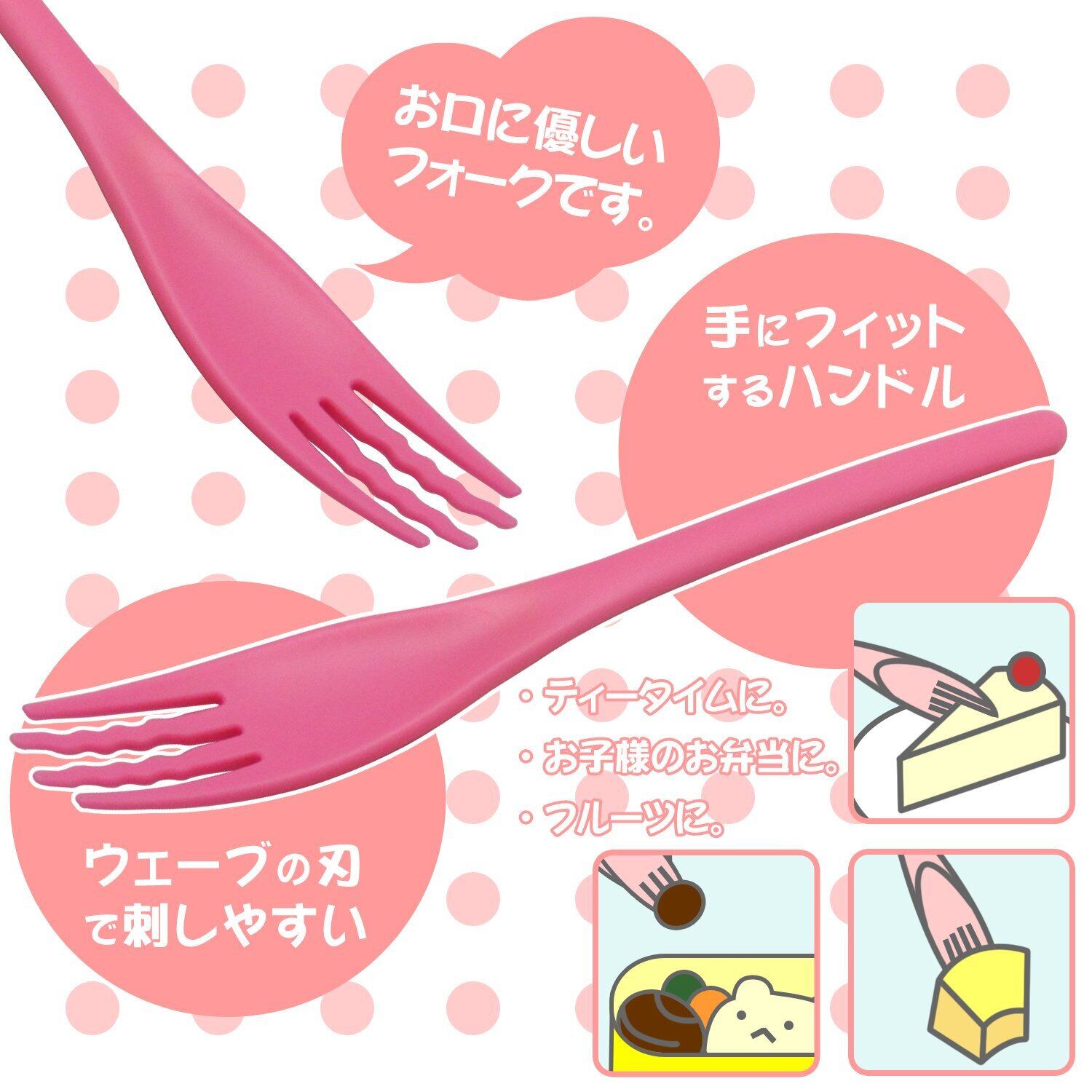 熱くなりにくい樹脂製。お口に運んだ時の口当たりも優しいフォークです。