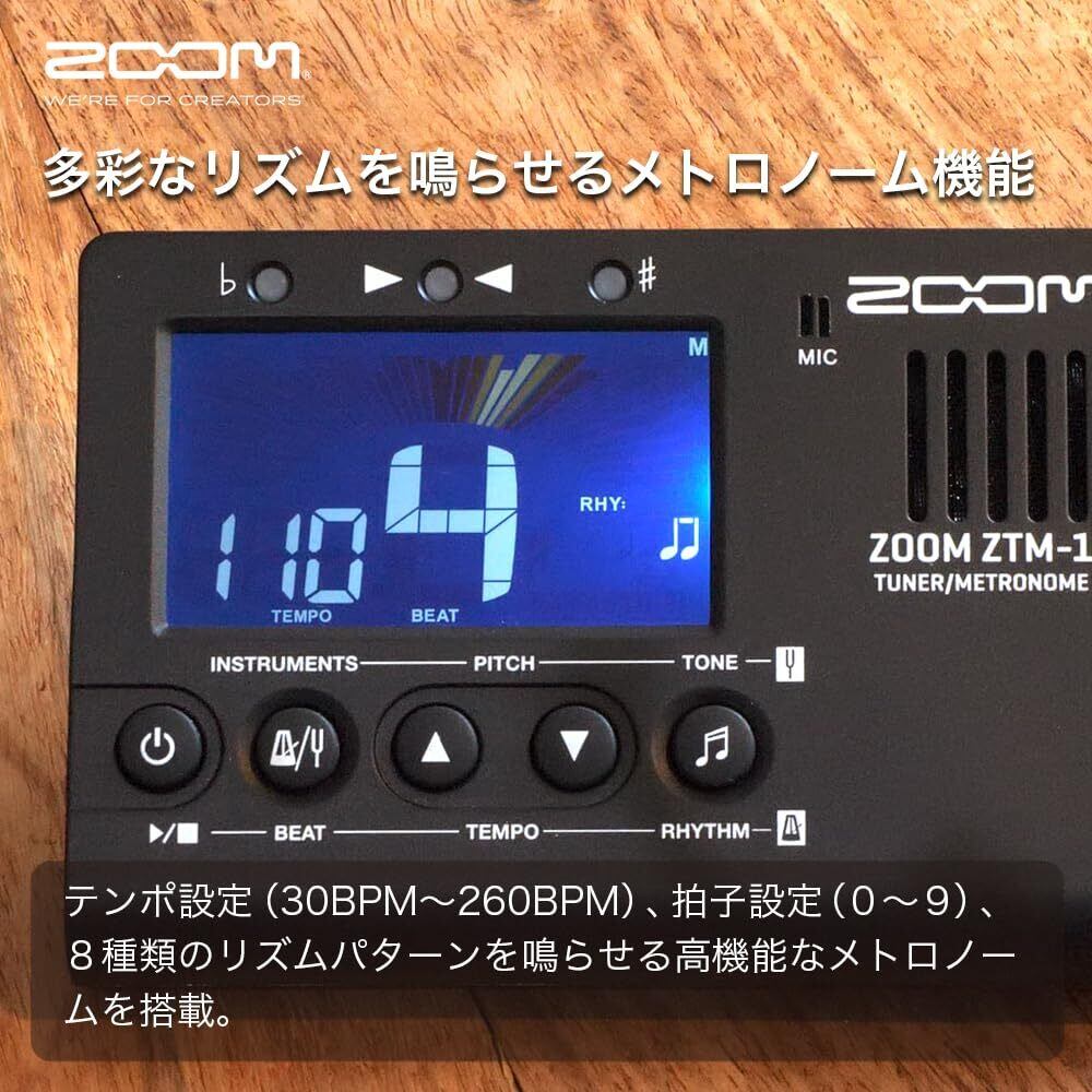 ZOOM ズーム チューナー&メトロノーム ZTM-1 楽器練習用 クロマチック対応 ギター ベース ウクレレ バイオリン 5モード搭載 高精度チューニング コンタクトマイク付属【国内正規品】