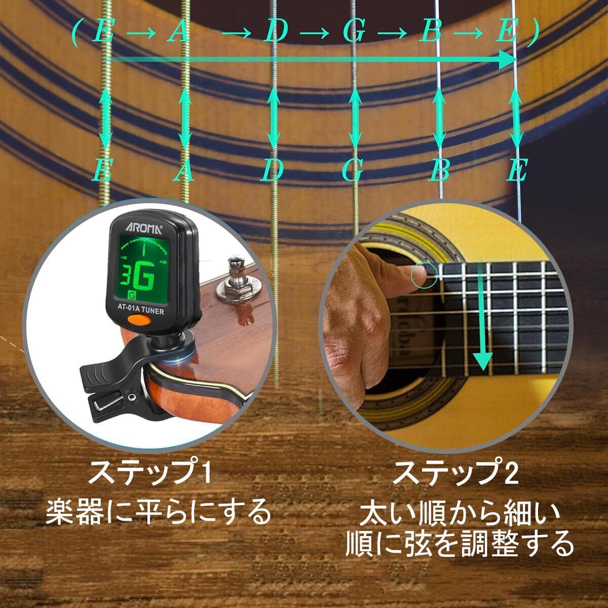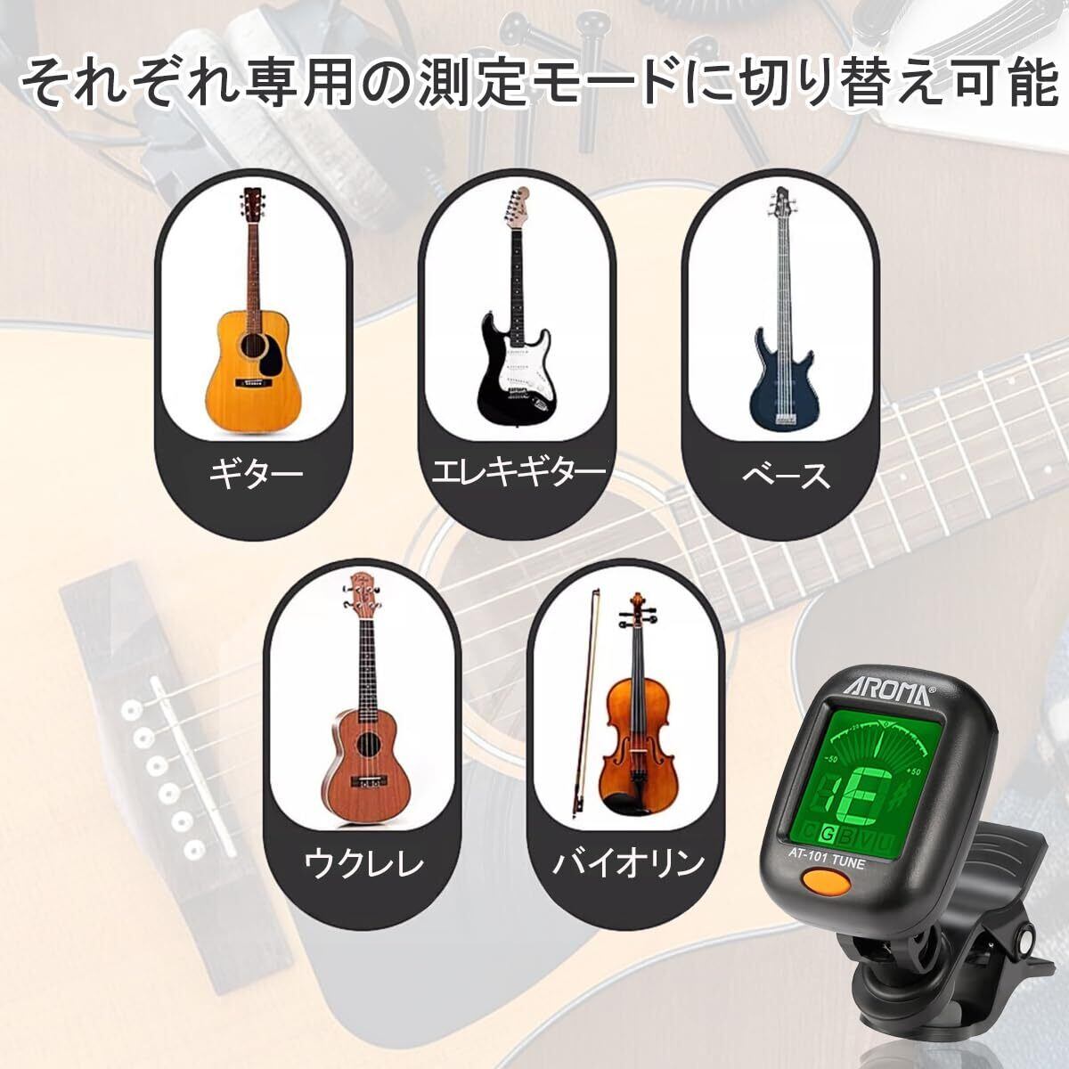 ギター チューナー クリップチューナー チューニングメーター 高精度 クリップ式チューナー ギター/ペース/ウクレレ/バイオリン用