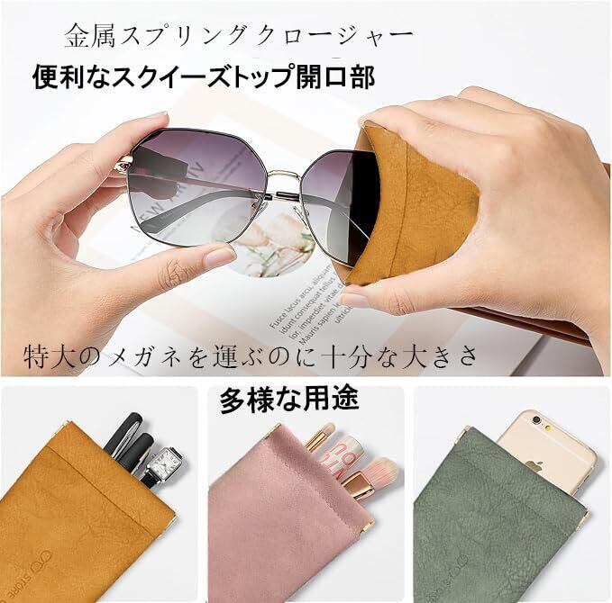 [jakabo] メガネケース スリム革眼鏡ケース 軽量 薄型 メガネケース ソフトサングラスケース 薄型 メガネ入れ フト バネ 口金 スクイーズ トップメガネポーチ ポータブル眼鏡 バッグ