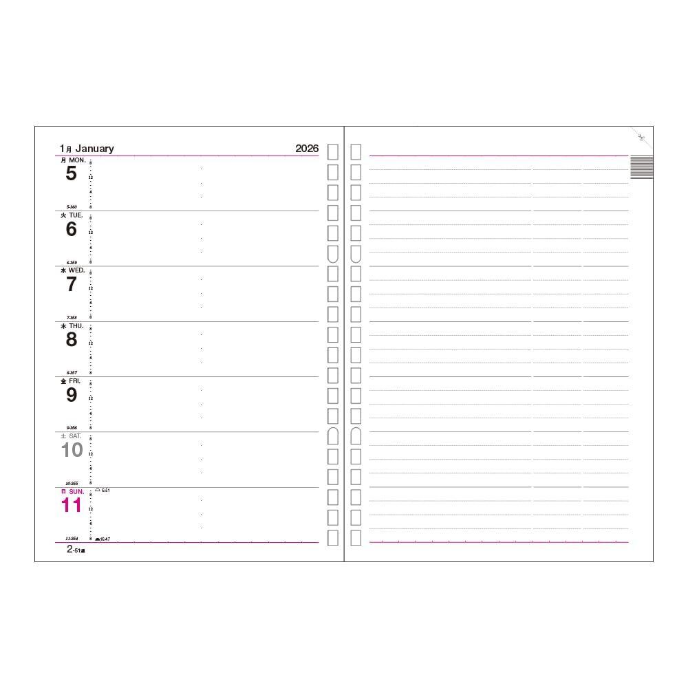 商品名:コレクト 手帳 2026 システム手帳 リフィル ウィークダイアリー 日記リーフ ウィークリー レフト 20穴 A5 C-557 2026年 1月始まり