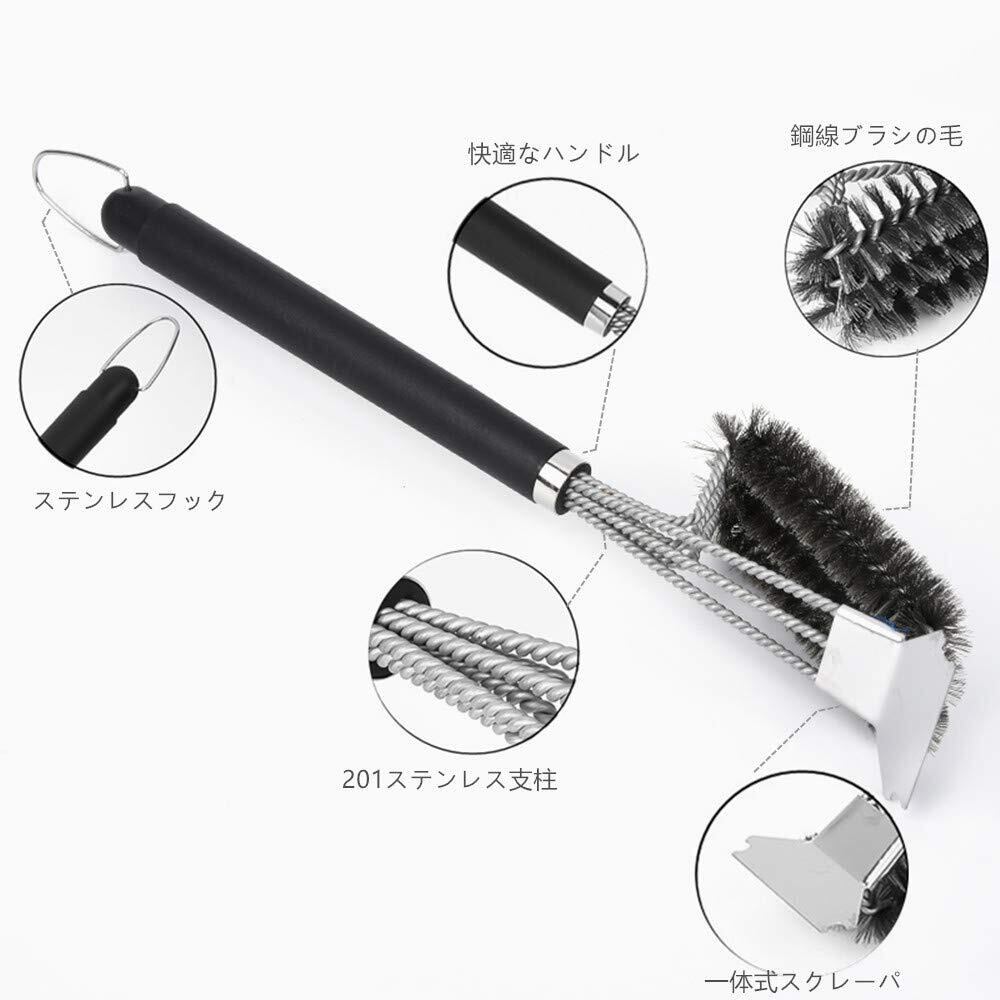 バーベキューブラシ 網用ブラシ グリルブラシ BBQ用掃除ブラシ 5倍強力清潔 汚れ取り 焦げ取り 鉄板クリーナー/鍋/鉄板焼器 BBQに適用 ステンレススクレーパー 防錆 耐久性