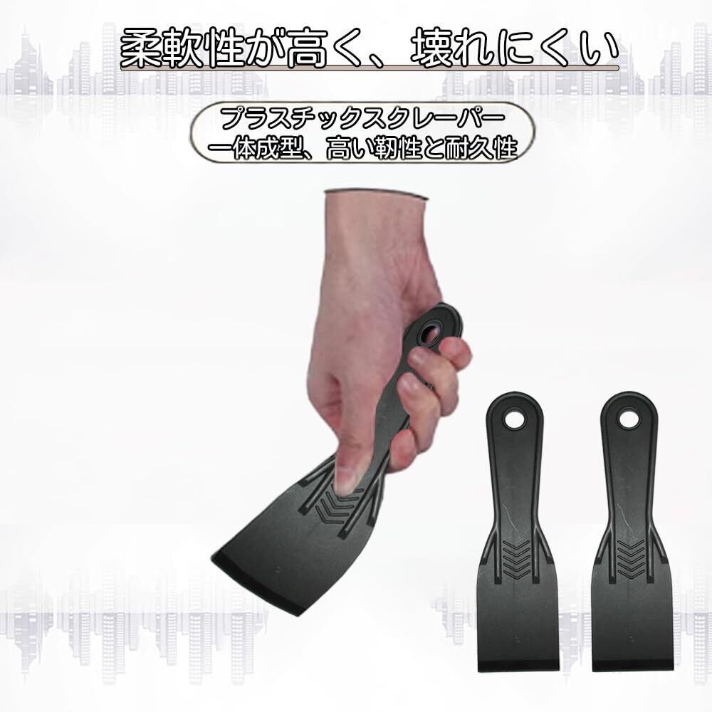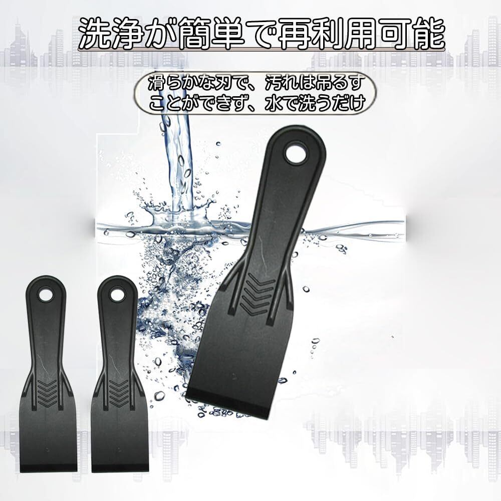 3.[クリーニングツールスクレーパー]: ガラスフィルムや窓ガラスやお風呂、キッチン等の汚れを取り外し、車検シールやステッカー、ラベルの剥がし、壁の付着物のかき落としなど専用のクリーニングツールです。