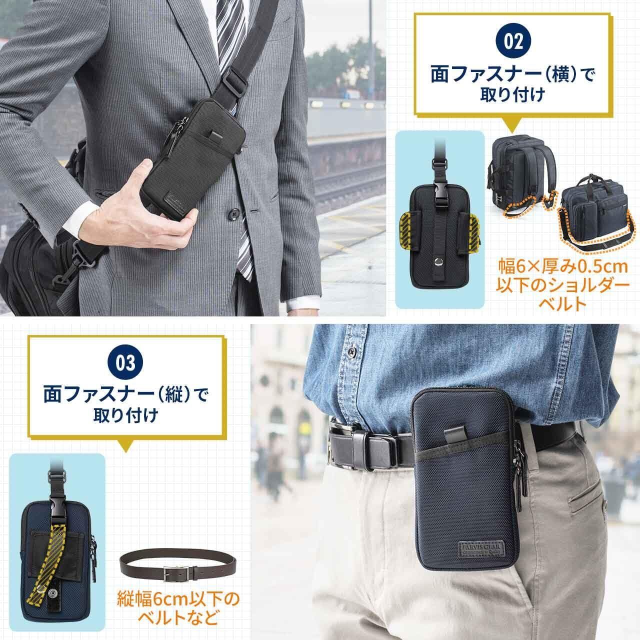 サンワダイレクト スマホポーチ リュック 3WAY取付け 6.5インチまで対応 ブラック 200-BAGOP1BK