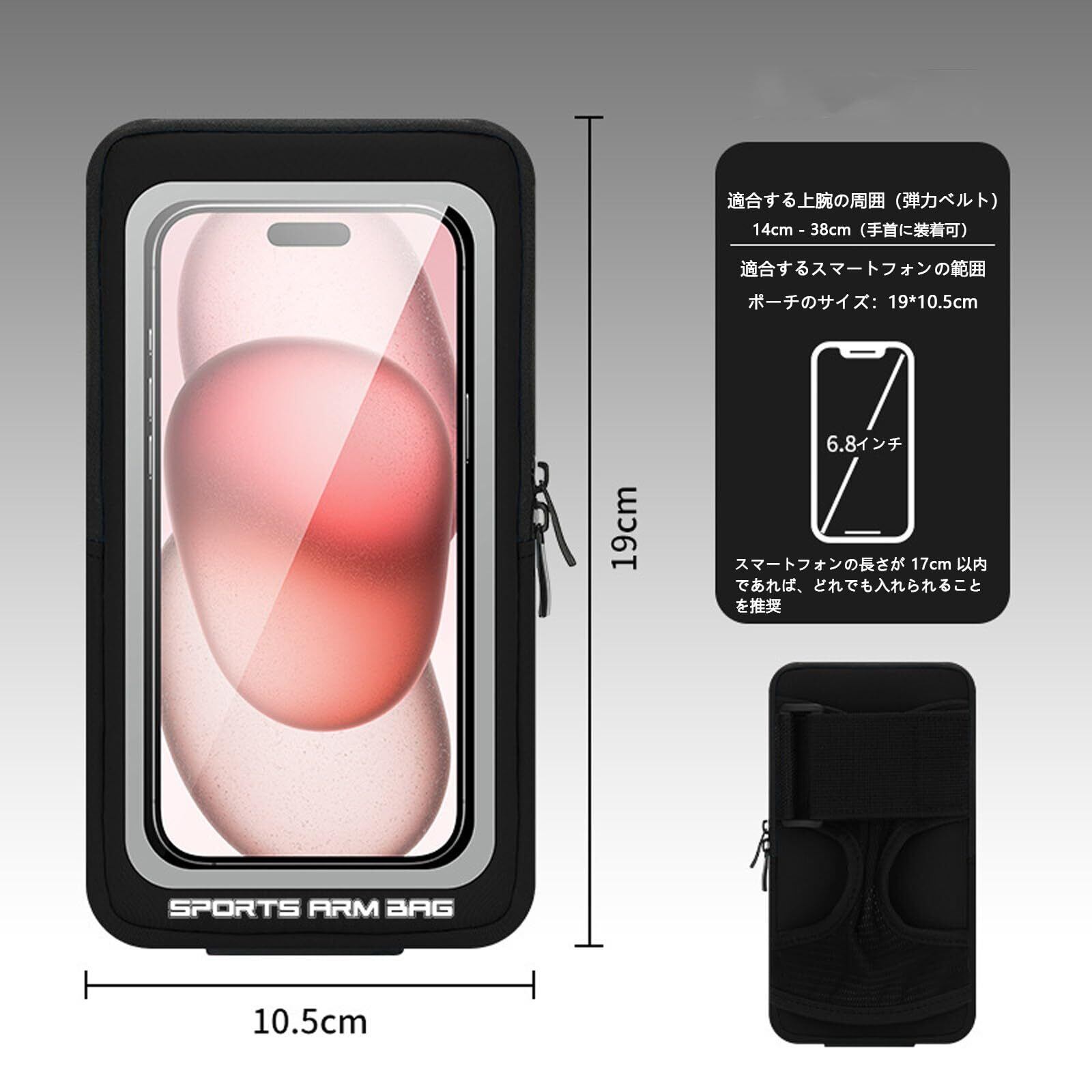 ランニング スマホホルダージョギング サイクリングに最適 アームバンド 手首・腕・手のひら対応防水防汗・軽量 マルチスポーツ対応 鍵収納ポケット付き