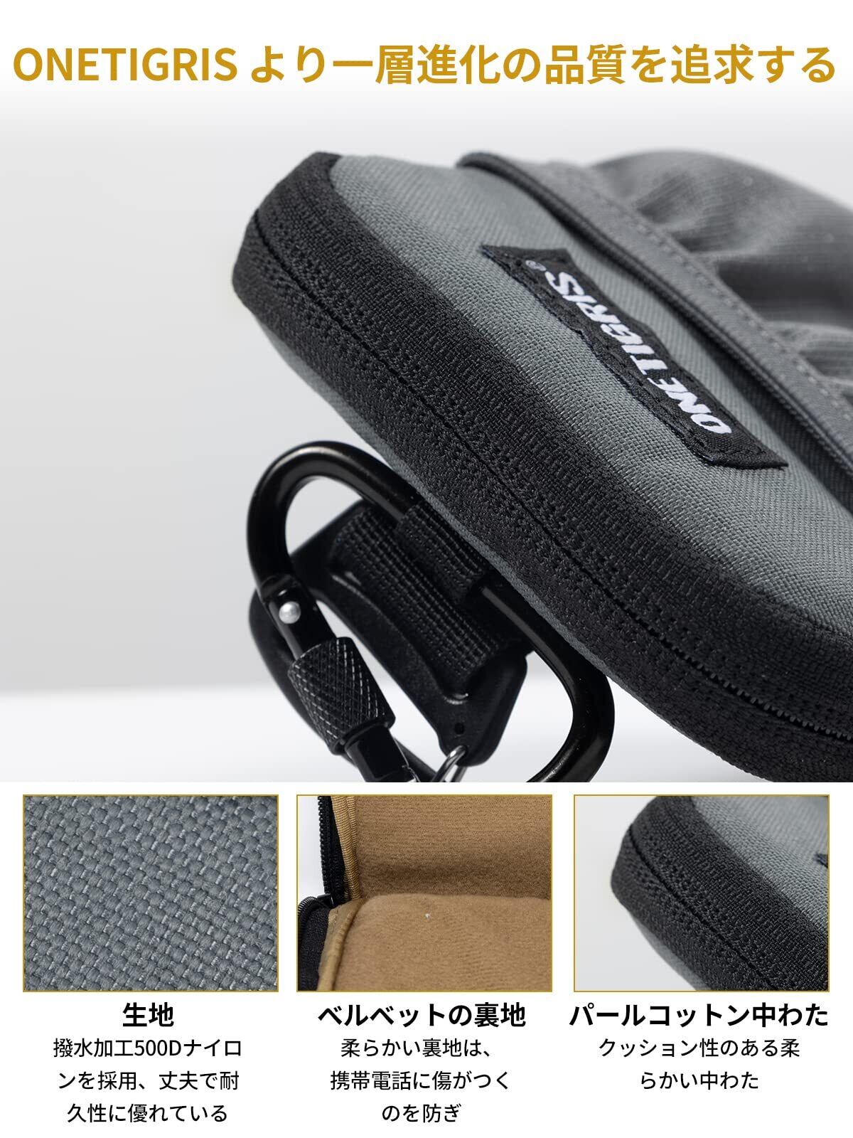 OneTigris スマホポーチ メンズ ベルト リュック 取り付け 携帯ポーチ YKK ファスナー カラビナ moll 付き アウトドア 登山 作業用 iphone 15 14 13 12 plus pro max Sony Galaxy Samsung スマートフォン 対応 グレー