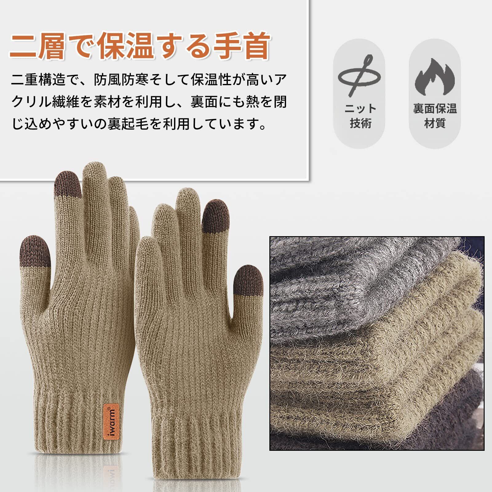 [ARZER] 手袋 ニット メンズ スマホ対応 グローブ【裏起毛・二重構造・弾性手首・快適フィット】 防風防寒 厚手 保温 男性用 自転車てぶくろ 全指 通勤 通学 アウトドア プレゼント