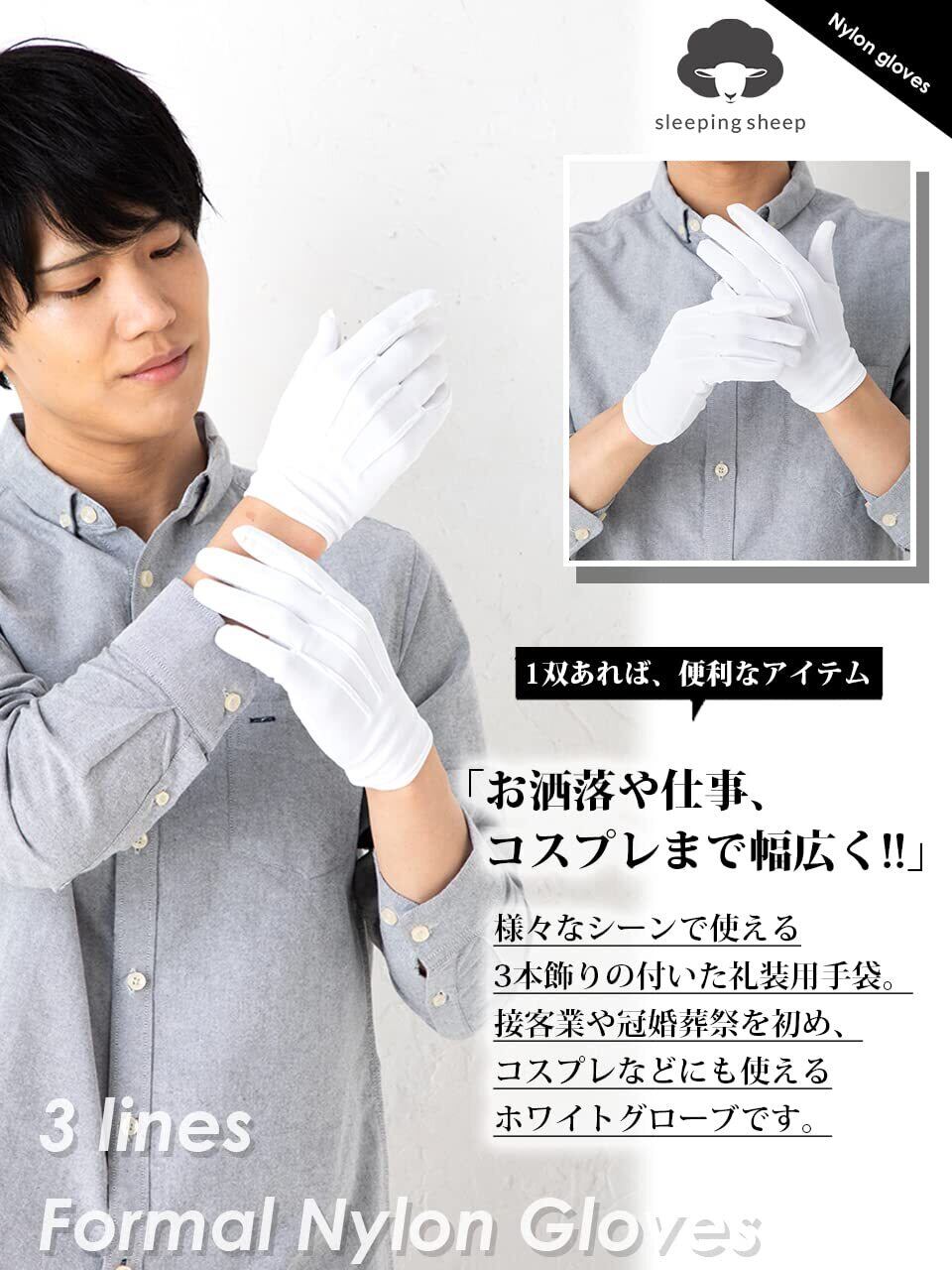 品よく見せてくれるアイテムなので接客業、警備員、警察、鉄道、観光バス、選挙用、冠婚葬祭に好適。コスプレなどにも使えると人気のホワイトグローブです。
