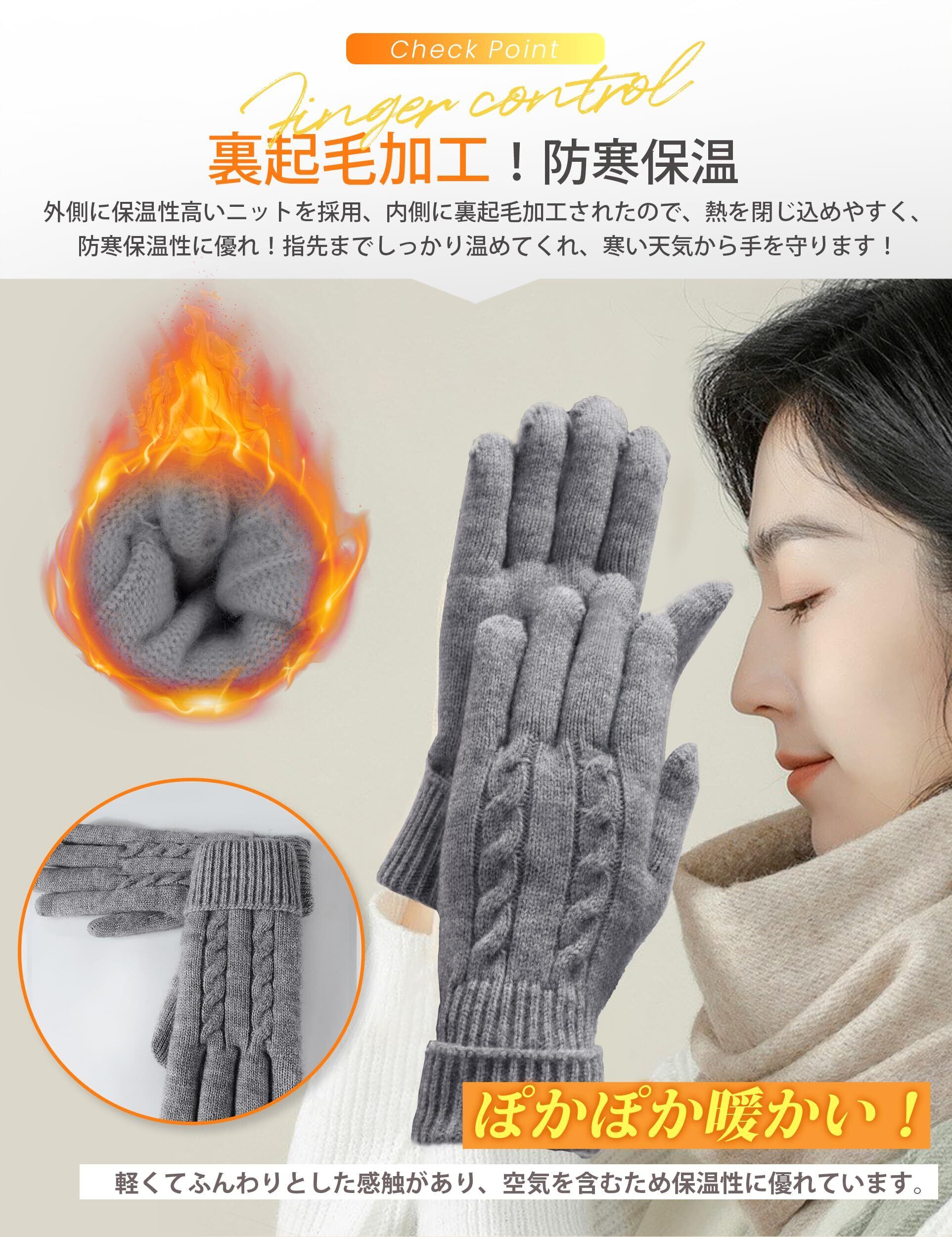[SLEEPSINERO] 手袋 防寒 レディース スマホ対応 【360°暖かい裏起毛!3本指タッチパネル】 保温 あったか 防風 伸縮 柔らかい おしゃれ ニット レディース手袋 てぶくろ 秋 冬 通勤 通学 女性