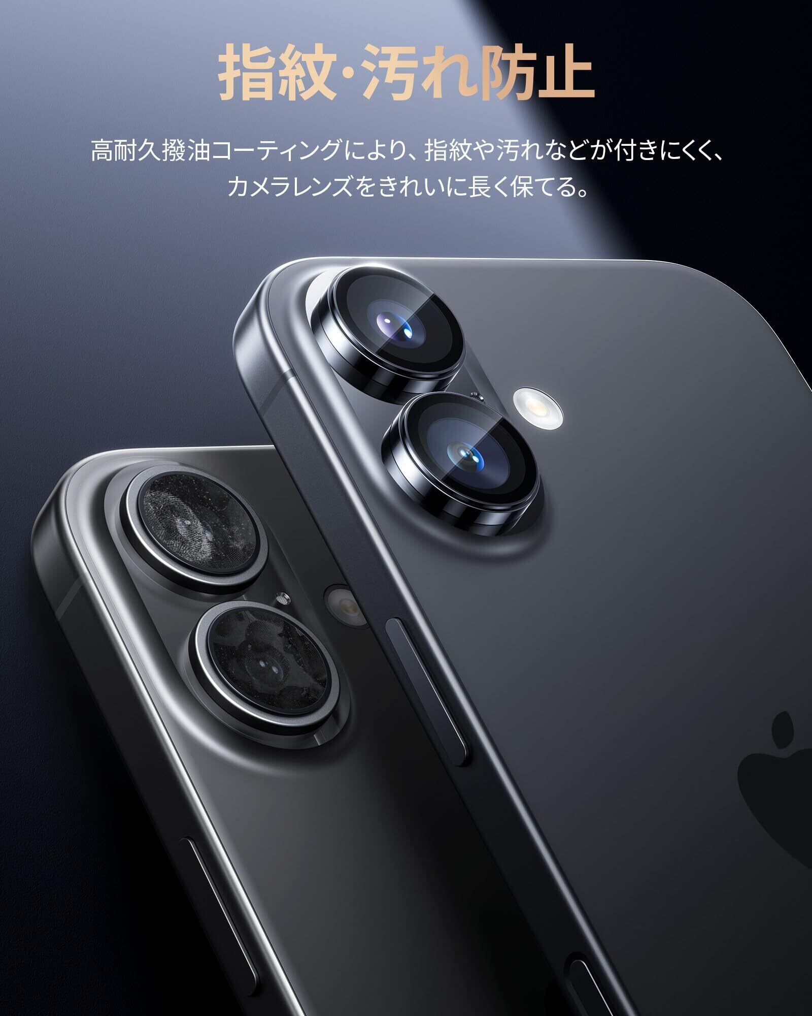 「一体感抜群・ケースとの併用」1:1精密加工のアルミ合金リングとガラスで、レンズに溶け込むような一体感。いPhone17/いPhone16/いPhone16Plus 用レンズフィルムは、まるでレンズを装着していないような自然なデザインで、iPhone本体の設計をありのままに生かし、洗練された高級感を演出!また、無駄なガラス部分を取り除くことで、市販されているほとんどのケースと併用できるので、お気に入りのケースと一緒にお使いいただけます。