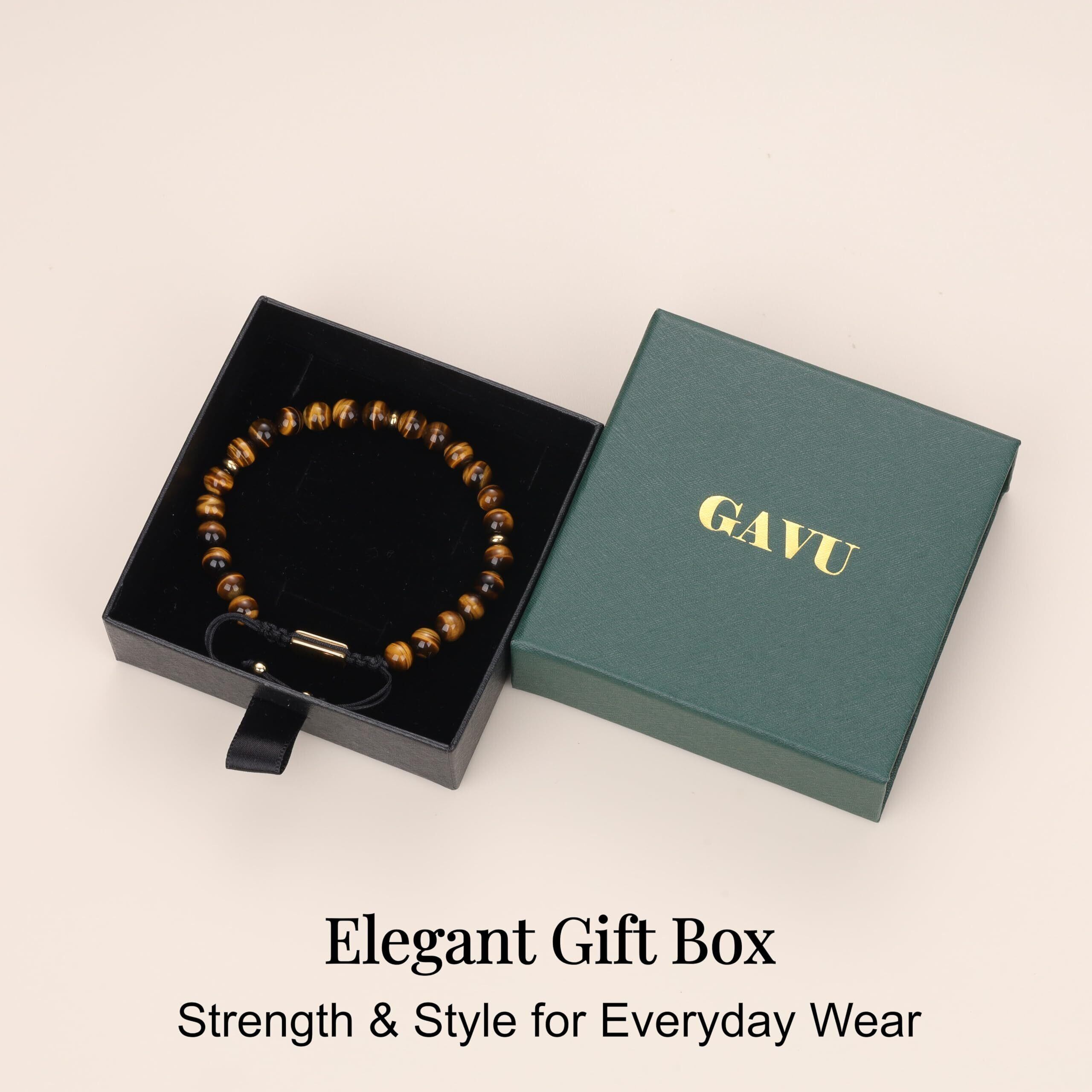 [GAVU] [ガーブ] 長さ調整可能 タイガーアイ ビーズ パワーストーン ブレスレット メンズ