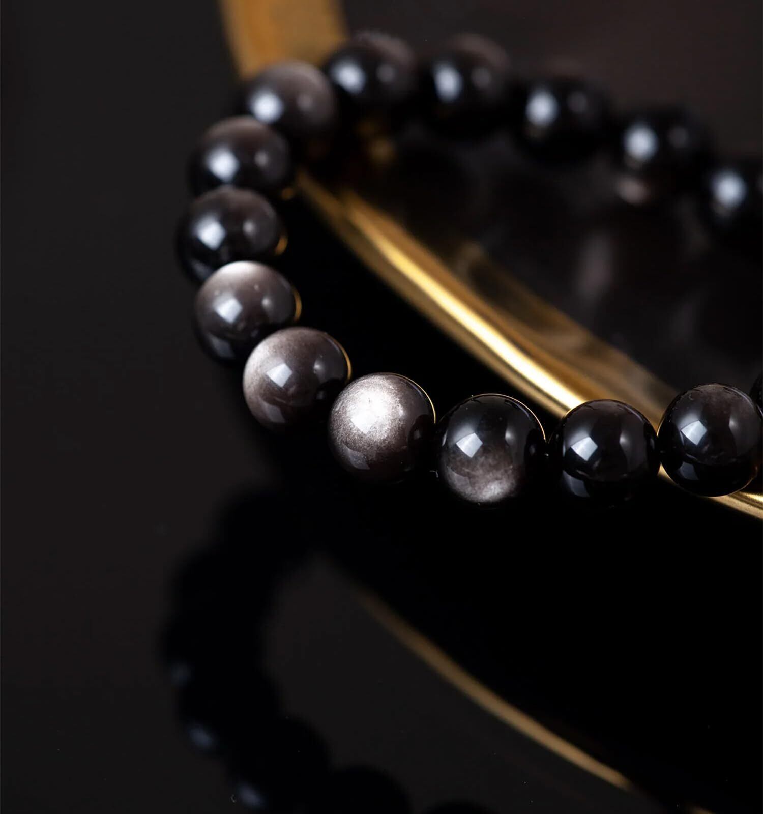 パワーストーン ブレスレット 天然石 シルバーオブシディアン 黒曜石 銀色の輝き 浄化用 【金運UP・仕事運UP・魔除け】 心の平和 浄化 災除け 人間関係 お守り エネルギーチャージ 数珠 ブレスレット メンズ レディース