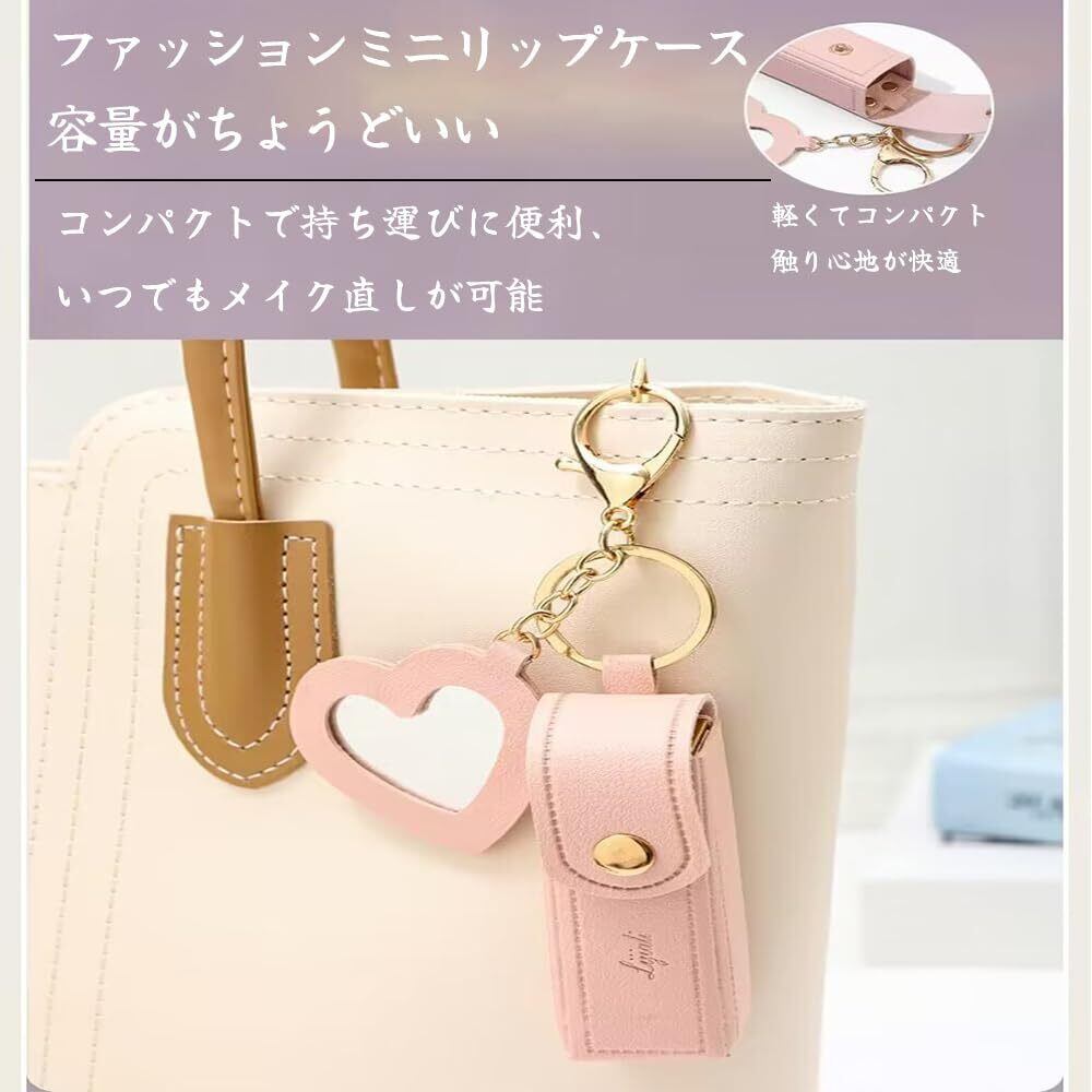 [FUGSHIYI] リップケース キーホルダー リップポーチ ミラー付き 口紅ケース リップスティックホルダー バッグチャーム ミニリップ ポータブルリップクリームホルダー おしゃれ 女性用 トラベル用 小物収納