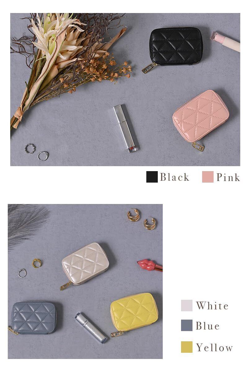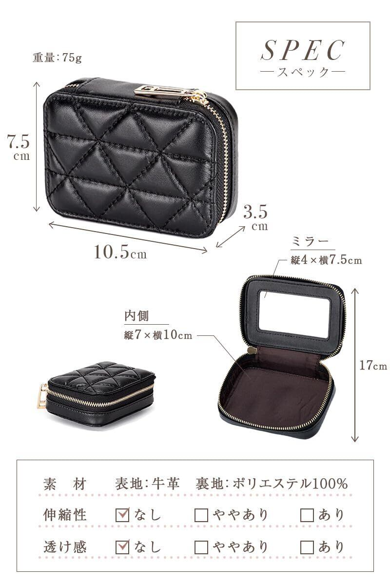 【在庫セール】sezu リップケース ミラー付き 化粧ポーチ 鏡付き ミニポーチ メイクポーチ 小さめ 本革 レザー キルティング コンパクト コスメポーチ 持ち運び 収納 ギフト (ブラック)