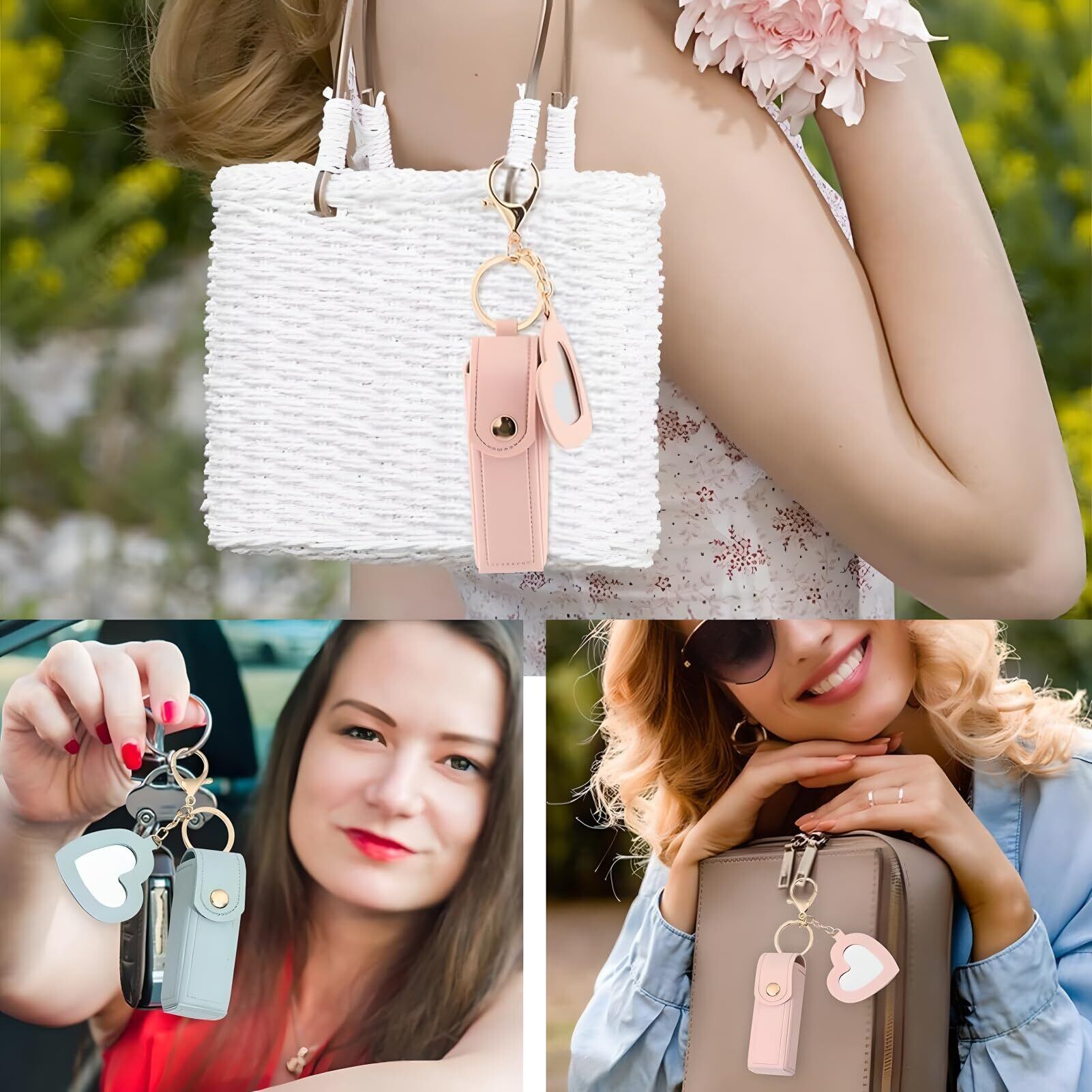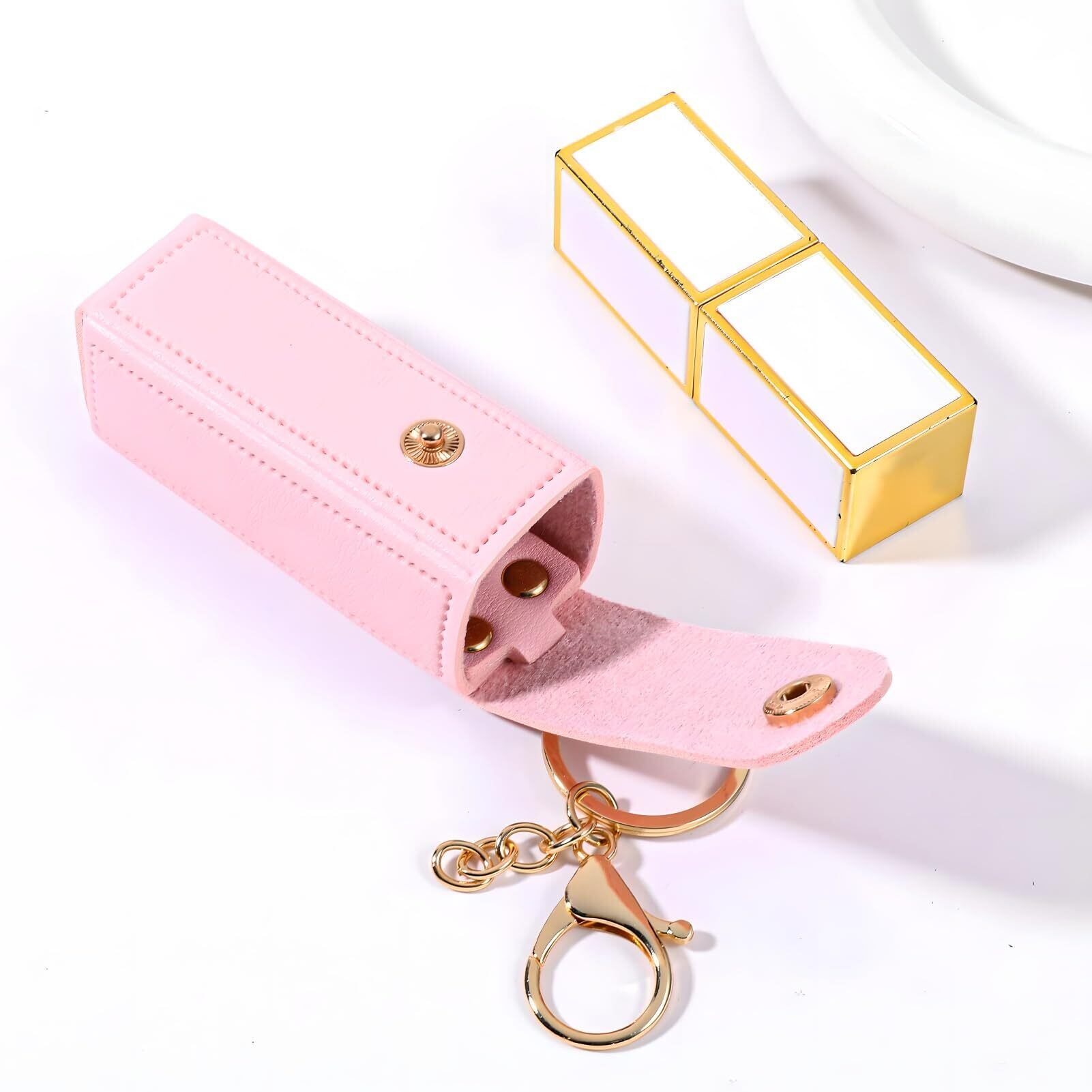 [Vibrly] リップケース ミラー付き キーホルダー 【バッグの中で、もう探さない】 口紅ケース 携帯用 PUレザー コンパクト 軽量 紛失防止 小物入れ おしゃれ かわいい レディース プレゼント [2個セット]