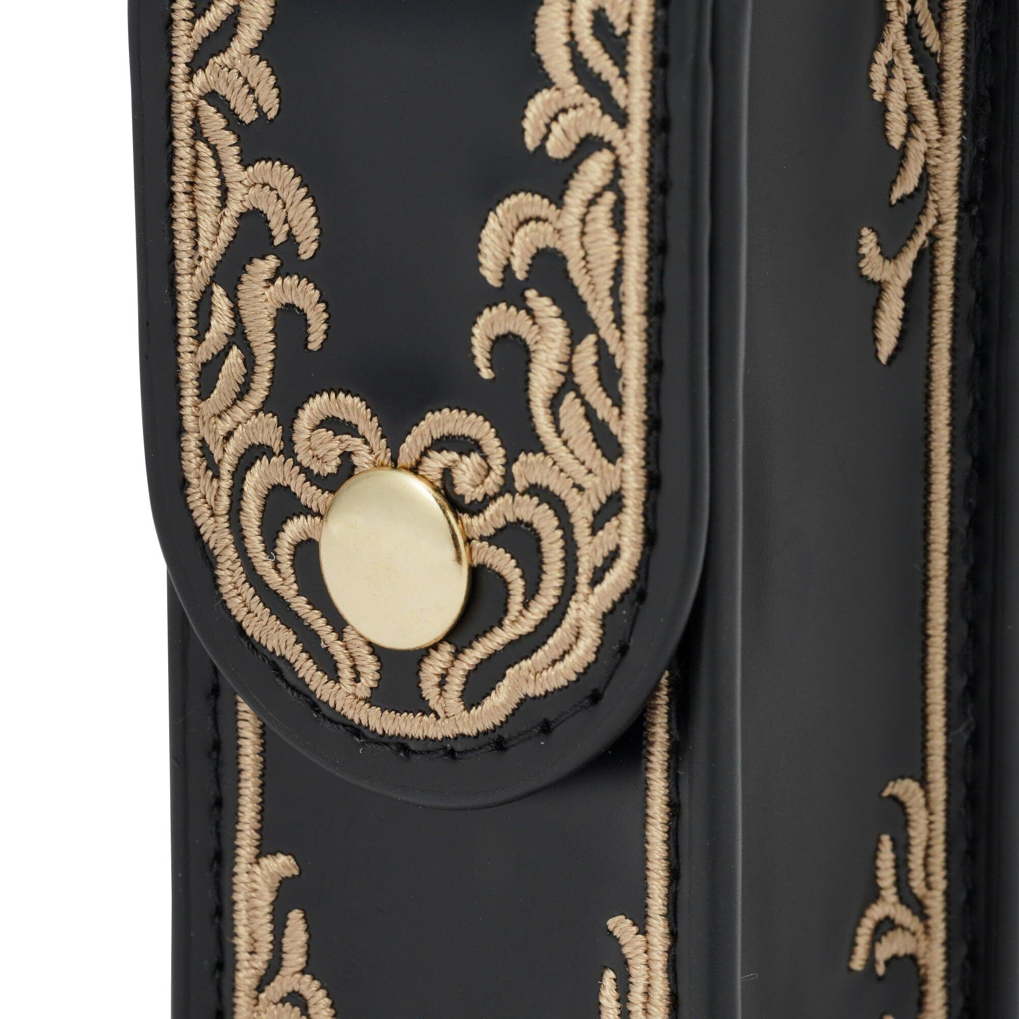 「スクエア」は金刺繍と黒合皮のコントラストが大人っぽいデザインで、エレガントなコーディネートにおすすめです。