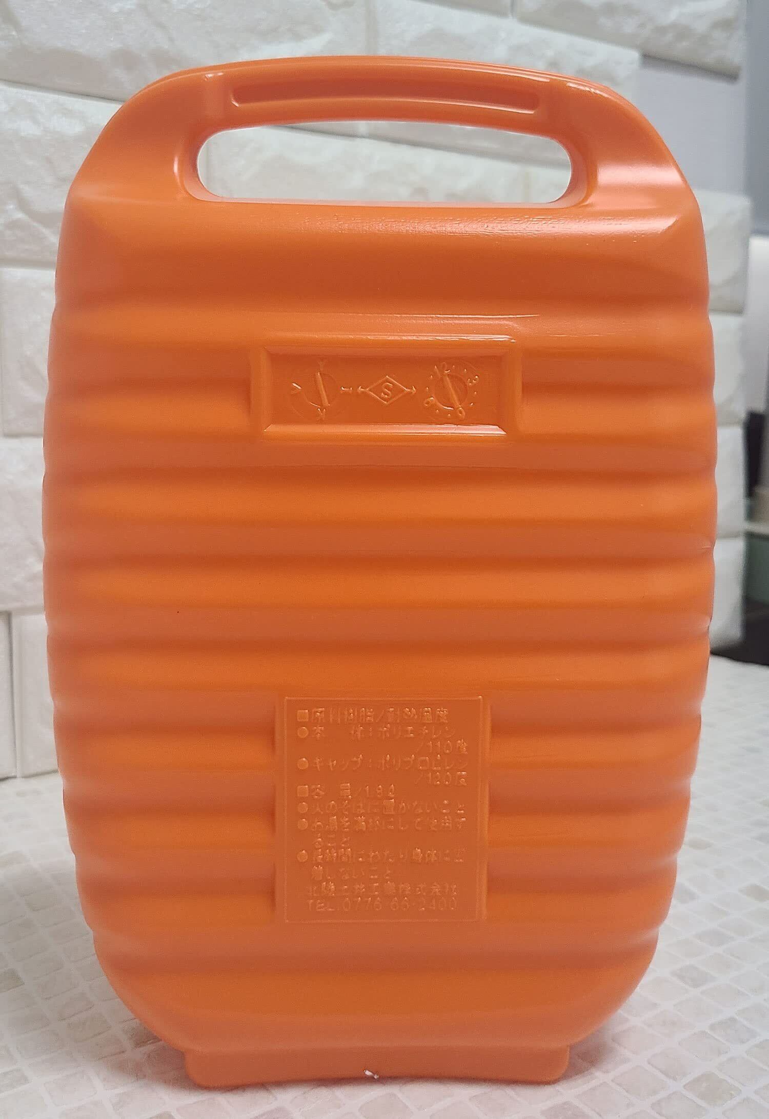 軽くて扱いやすいプラスチック製。また、金属製に比べて表面が熱くなりにくいのでお湯を入れた直後でも袋に入れたり持ち運んだりしやすいのも特長。