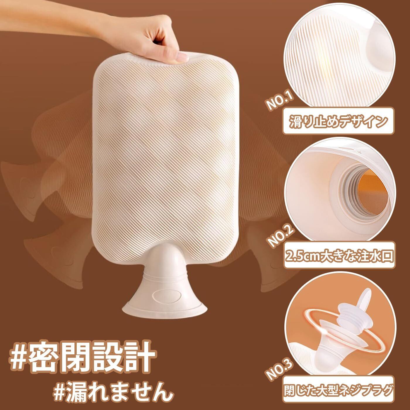 湯たんぽの使いご注意:1、お湯を注ぐ時は、湯たんほをカバーから出さないでください。2、水を注ぐ際には、その下に水を受ける容器があります。(お湯が漏れて足をやけどしないようにします)。3、湯たんぽは直接肌に触れないように必ずタオルやカバーなどて包むことで、低温やけどを防ぐことができます。4、長時間体の同じ場所を温めないように気をつけてください。5、湯たんぼに適切なお湯の温度は、一般的に約70℃以下程度にするとちょうと良いことが多いようです。6、沸かしたお湯を少し冷ますか、水と混ぜてから湯たんぼに注ぐと良いでしょう。7、お湯の2/3を注ぐ、完全に満たしないてください。