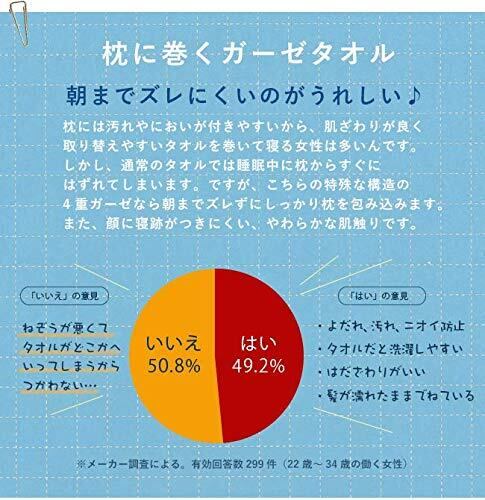 ●特殊構造の4重ガーゼで朝までズレずにしっかり枕を包み込みます。巻き込み部分は乾きやすい1重ガーゼです。