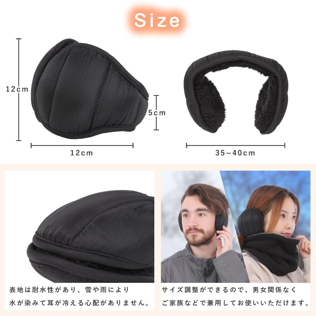 【新着商品】[E-Reise] イヤーマフ イヤーウォーマー 冬 防寒 極暖ふわふわ裏起毛 折畳み 肉厚ボア 耳カバー 耳あて バックアーム コンパクト 防風 保温 調節可能 通勤通学 アウトドア 男女兼用