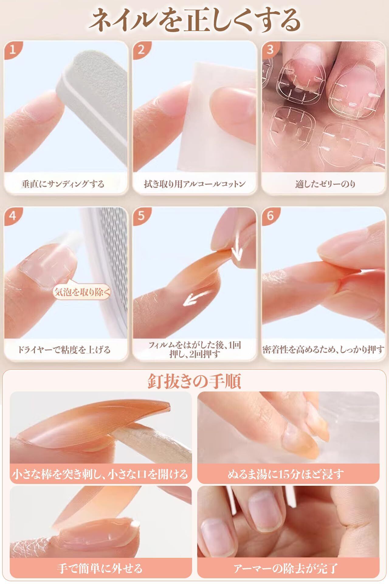 ✋【時短で簡単プロネイル】面倒な準備は一切不要!保護フィルムを剥がして貼るだけのシンプル設計。朝の忙しい時間や急な外出前でも、手軽にサロンクオリティの仕上がりが楽しめます。